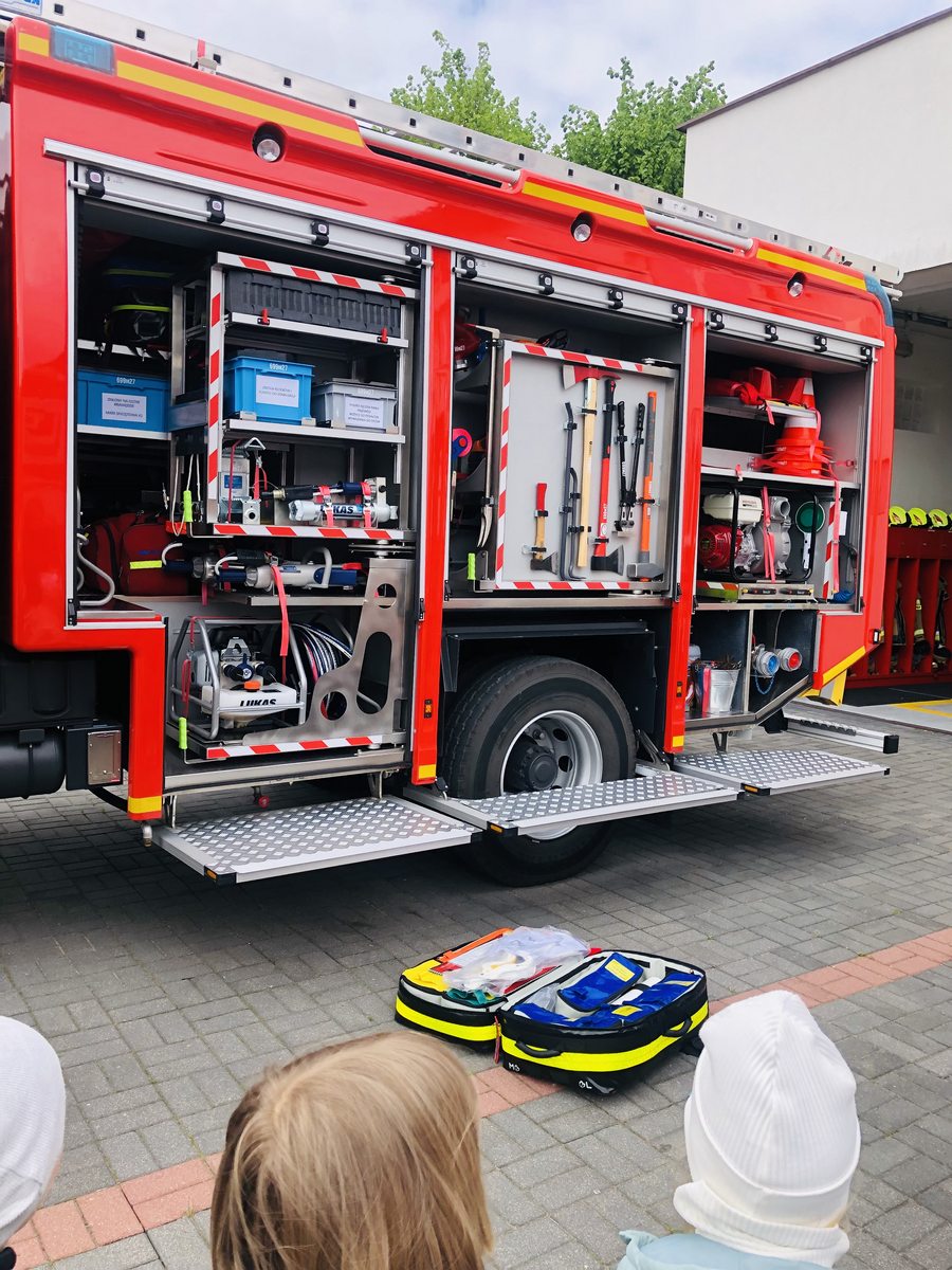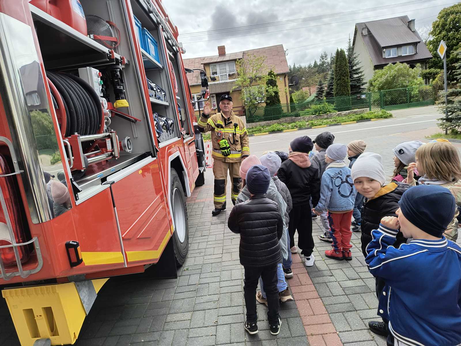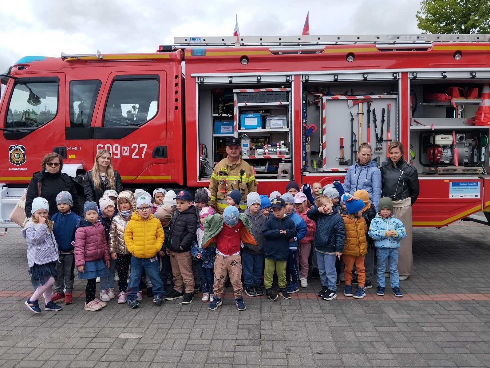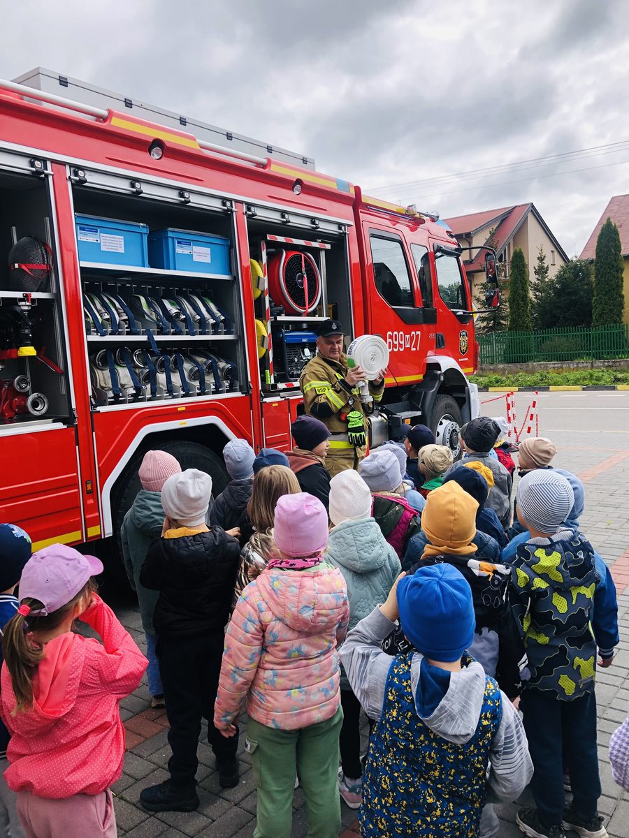 05.05.2025 r. grupy „Pszczółki" i „Motylki" odwiedziły Ochotniczą Straż Pożarną w Długosiodle. Spotkanie prowadził prezes OSP Długosiodło Pan Sylwester Suchta. Przedszkolaki z zachwytem i wielkim zaciekawieniem uczestniczyły w spotkaniu, podczas którego mogły poznać specyfikę pracy strażaków, umundurowanie strażackie oraz niektóre sprzęty jakimi dysponują. Dzieci dowiedziały się, że strażacy nie tylko gaszą pożary, ale również są wzywani do wypadków samochodowych, do zalanych domów, a także ratują zwierzęta. Podczas spotkania Pan Suchta uświadomił dzieciom jak zachowywać się w sytuacjach zagrożenia, oraz jak powiadomić służby ratownicze. Wielką radość przedszkolakom sprawiło obejrzenie z bliska wozu strażackiego oraz zapoznania się z jego wyposażeniem. Dzieci zobaczyły również jak działa wąż strażacki. Serdecznie dziękujemy Panu Sylwestrowi Suchcie za spotkanie. Wiedza, którą dzieci nabyły utrwalana będzie przy każdej okazji podczas zajęć, aby dzieci nabrały pewności siebie w trudnych sytuacjach i mogły udzielić pomocy sobie i innym. Dzięki takim spotkaniom dzieci poznają a zarazem szanują ciężką i odpowiedzialną pracę strażaka, wiedzą jak dbać o własne i innych bezpieczeństwo, kształtują odpowiednie zachowania w trudnych sytuacjach, zaznajamiają się z sytuacjami, w których powinny korzystać z numerów alarmowych.