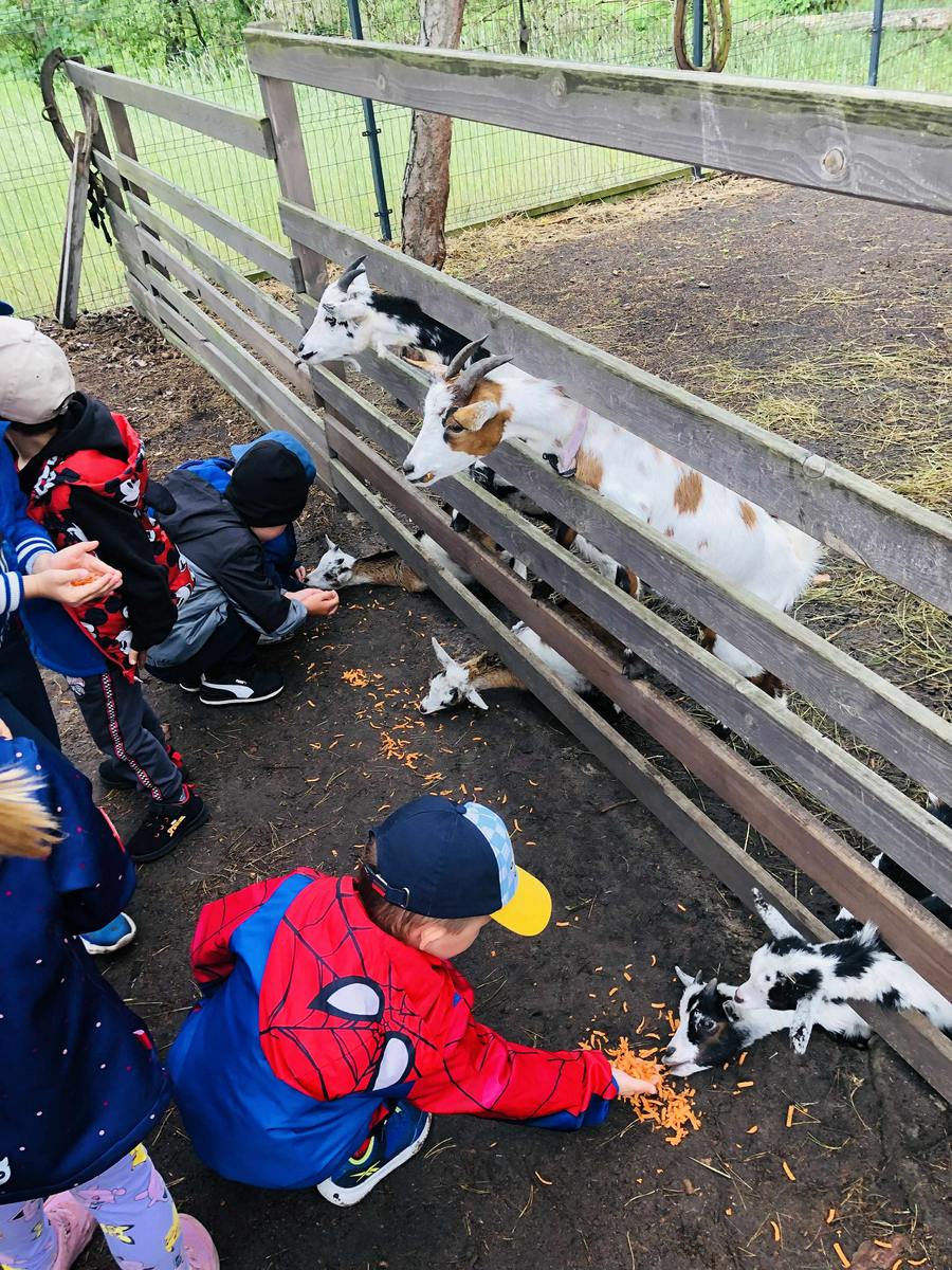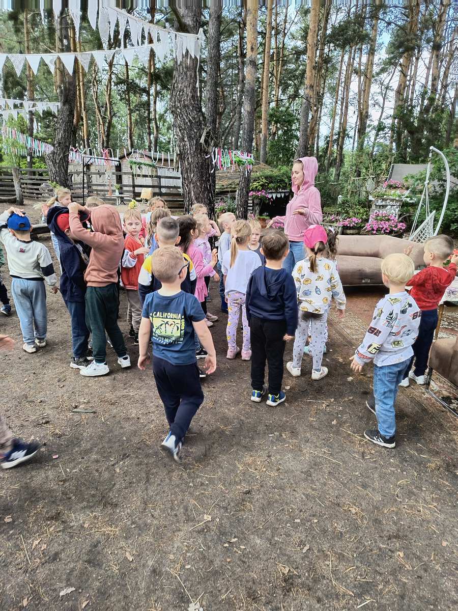 11 czerwca dzieci z grup „Motylki” i „Pszczółki” wybrały się do parku rozrywki „Skrzaty z Lipin”. W pięknej, leśnej scenerii parku czekało na dzieci wiele atrakcji. Pierwszą było zwiedzanie mini ZOO Dzieci dowiedziały się mnóstwo ciekawostek o zwierzętach. Karmiły alpaki, mini kózki, obserwowały wesołe króliczki. Świetnie bawiły się na placu zabaw, karuzeli łańcuchowej, dmuchanej zjeżdżalni, skakały na trampolinie, zjeżdżały na tyrolce a nawet grały na pianinie. Wzięły udział w warsztatach plastycznych „Łapacze snów” . W przerwie obiadowej z wielkim apetytem zajadały upieczone na grillu kiełbaski. Ostatnią atrakcją było szukanie magicznej skrzyni ze skarbem. Oczywiście zakończone sukcesem . Wycieczka dostarczyła przedszkolakom niezapomnianych wrażeń oraz dużo aktywnej i bardzo kreatywnej rekreacji.