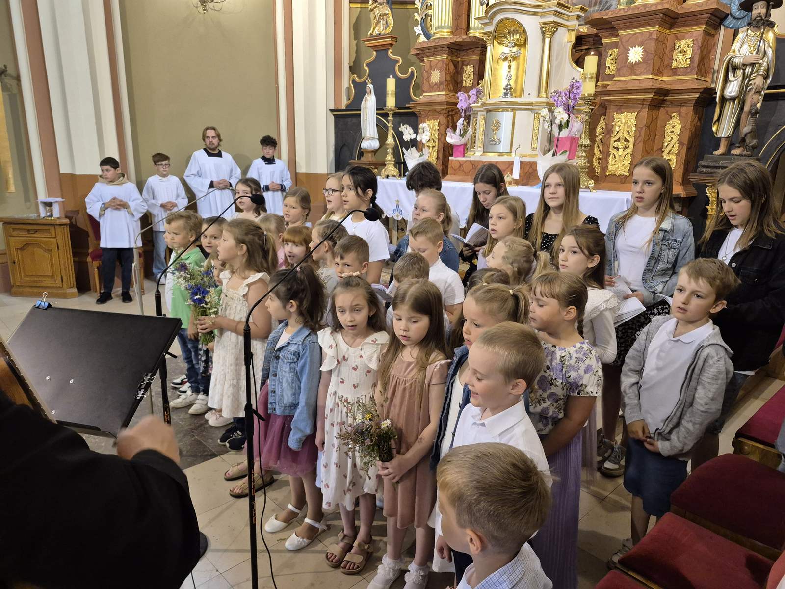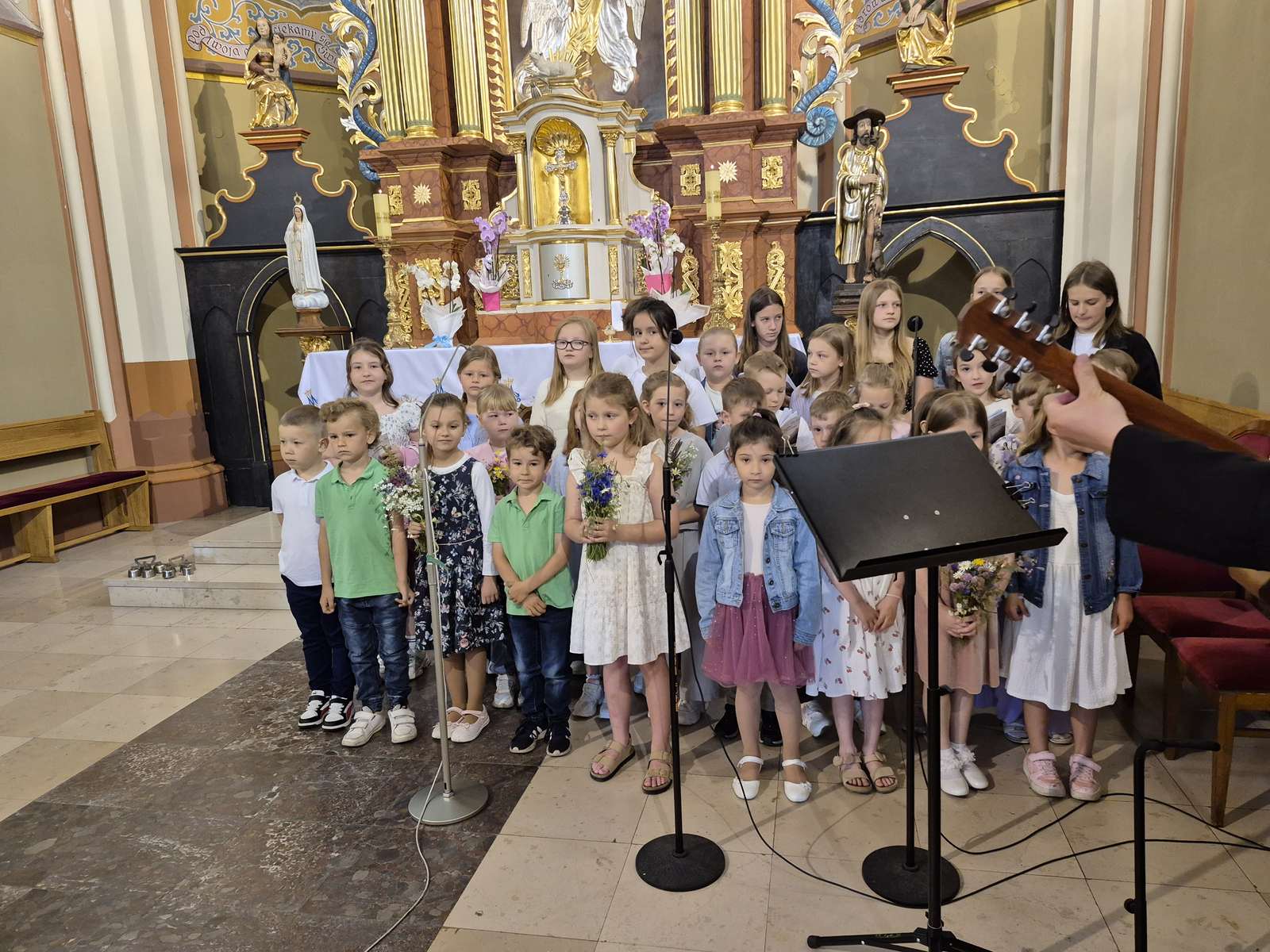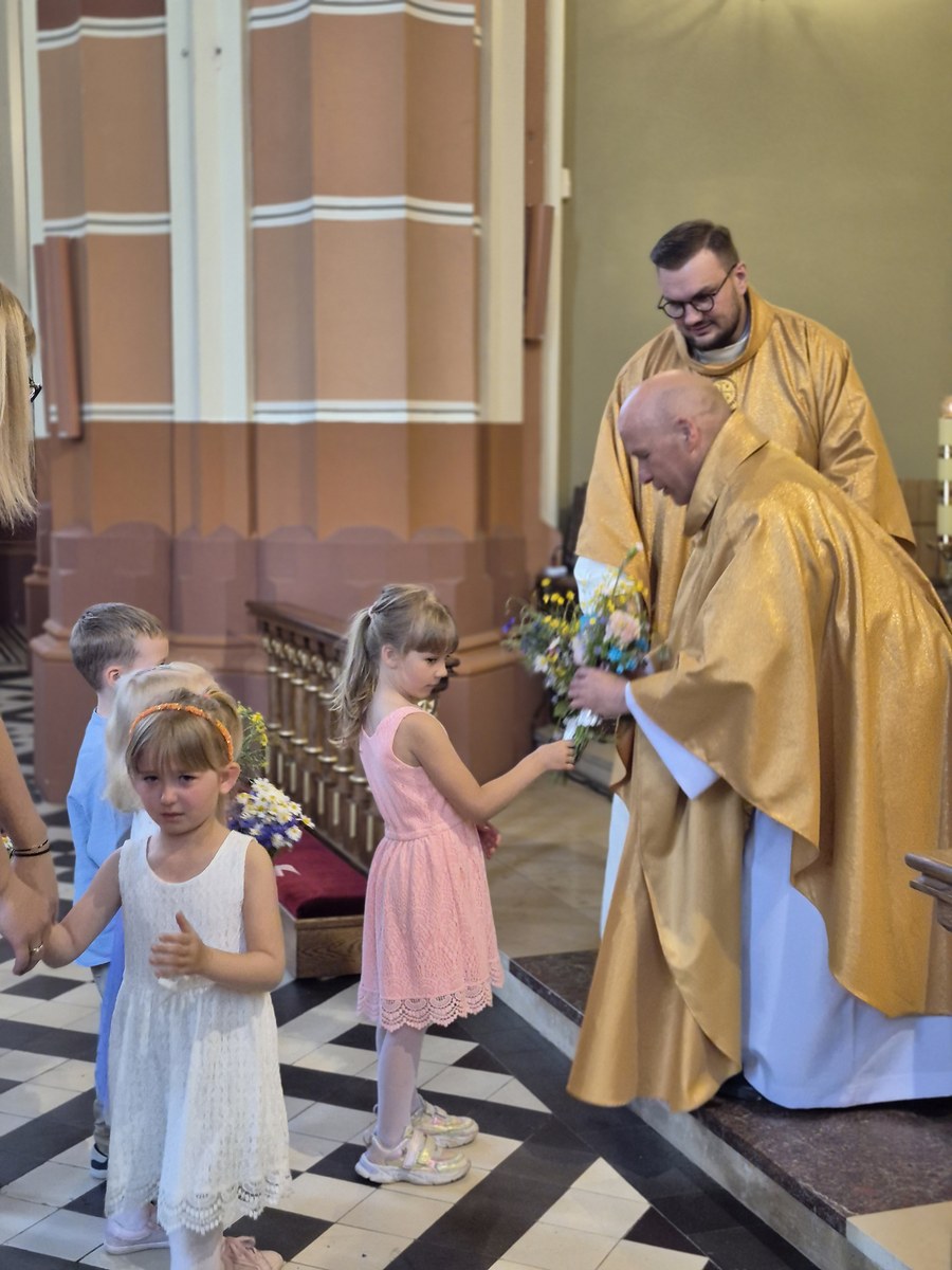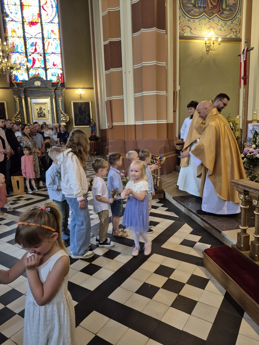 01.06.2025r. odbyła się uroczysta Msza Święta w intencji Rodzin naszych przedszkolaków oraz pracowników przedszkola. Dzieci z zaangażowaniem i radością uczestniczyły w Eucharystii, a ich śpiew wypełniał kościół! Pracownicy przedszkola czytali, śpiewali psalm, a także nieśli dary ze swoimi pociechami– wszystko to w atmosferze wspólnej modlitwy.