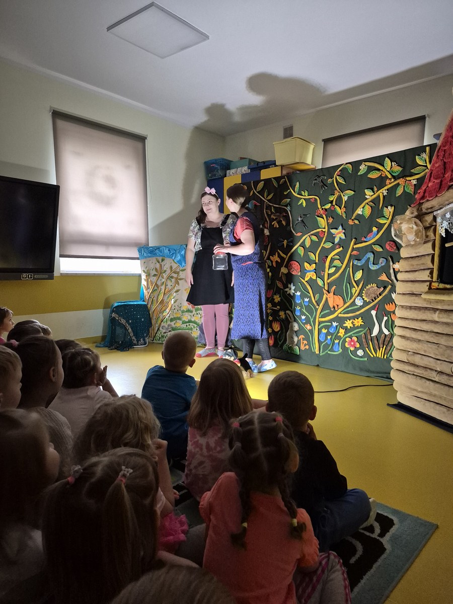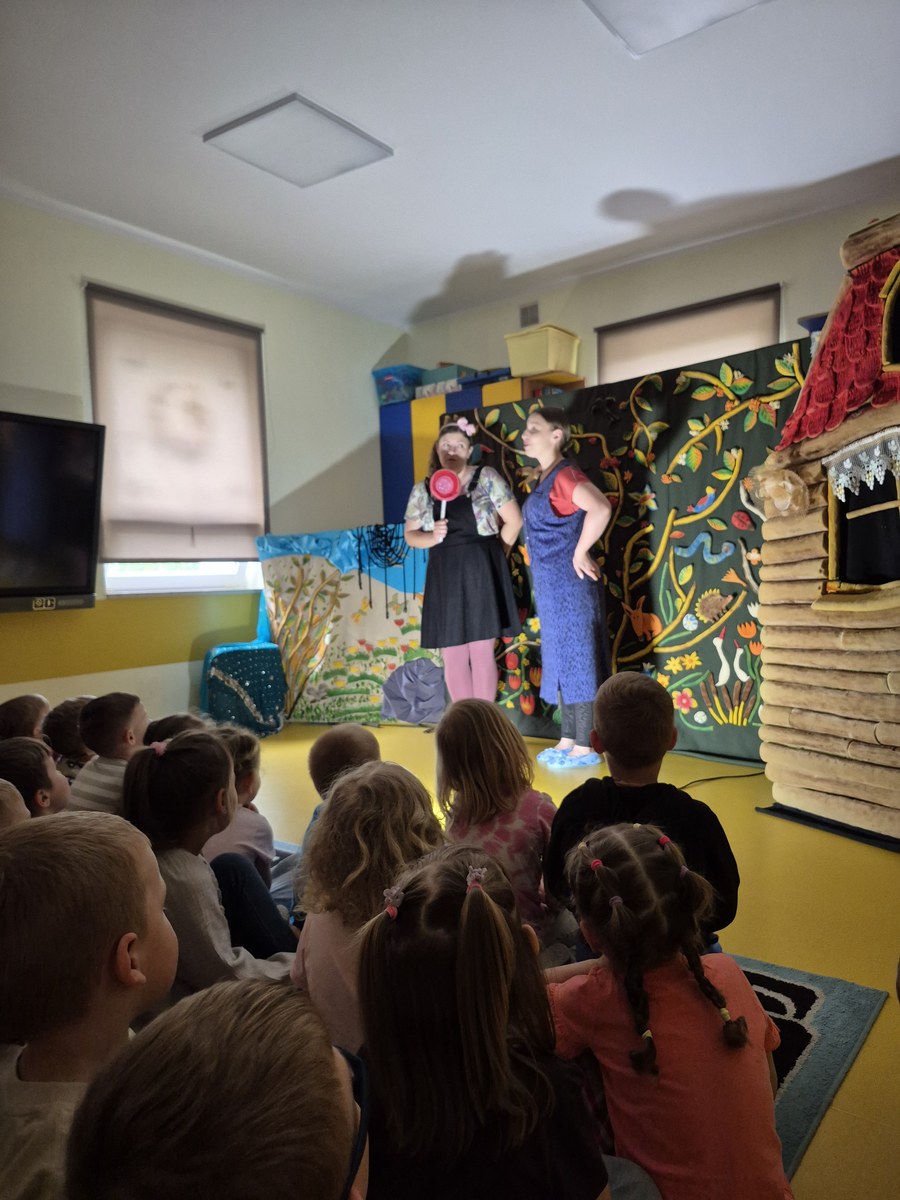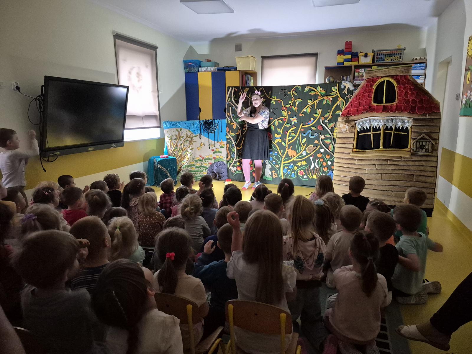 29 maja przedszkolaki obejrzały spektakl pt.: „Co w trawie piszczy?” w wykonaniu grupy artystycznej „Pasja” z Białegostoku. Teatrzyk opowiadał ciekawą historię o życiu owadów na łące. Aktorzy zachęcając dzieci do wspólnej zabawy w znakomity sposób poszerzyli wiedzę dzieci o zagadnienia przyrodnicze.