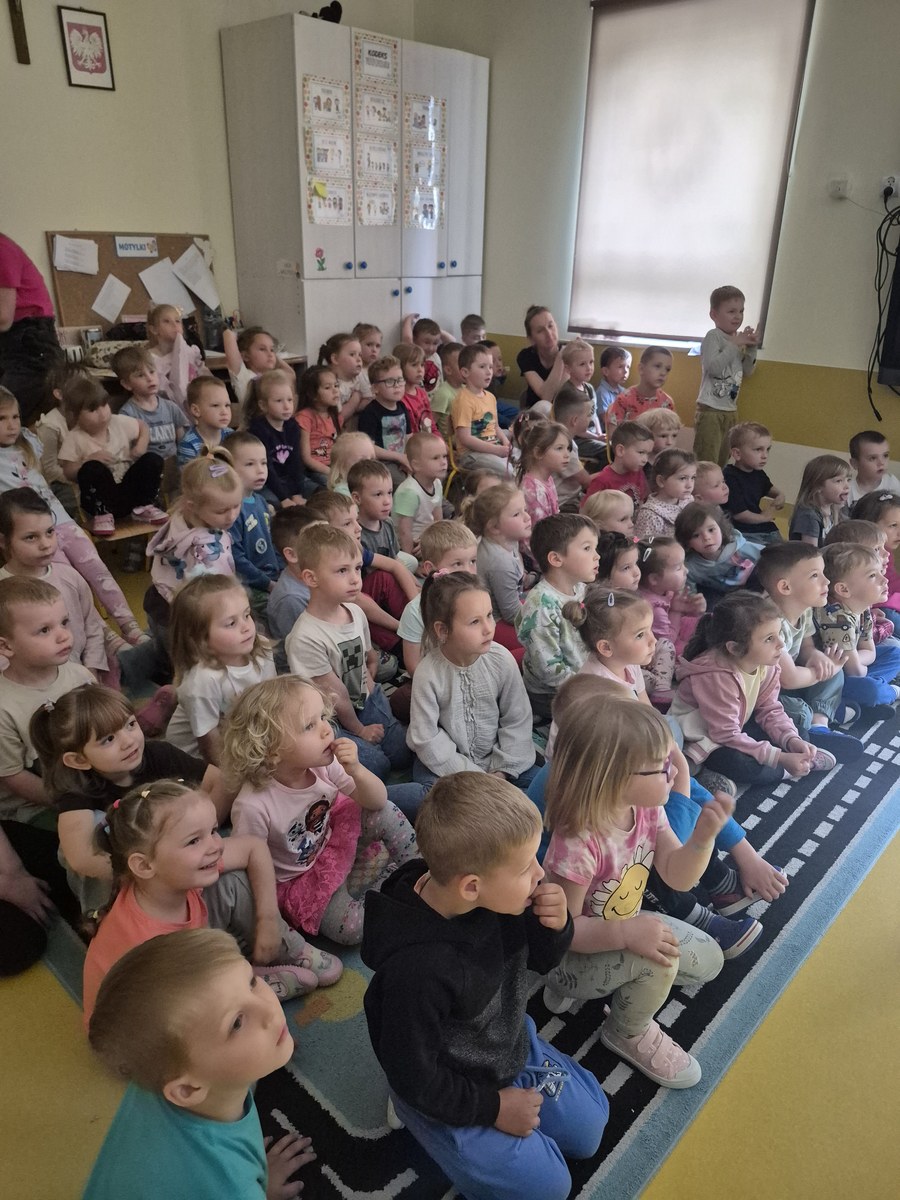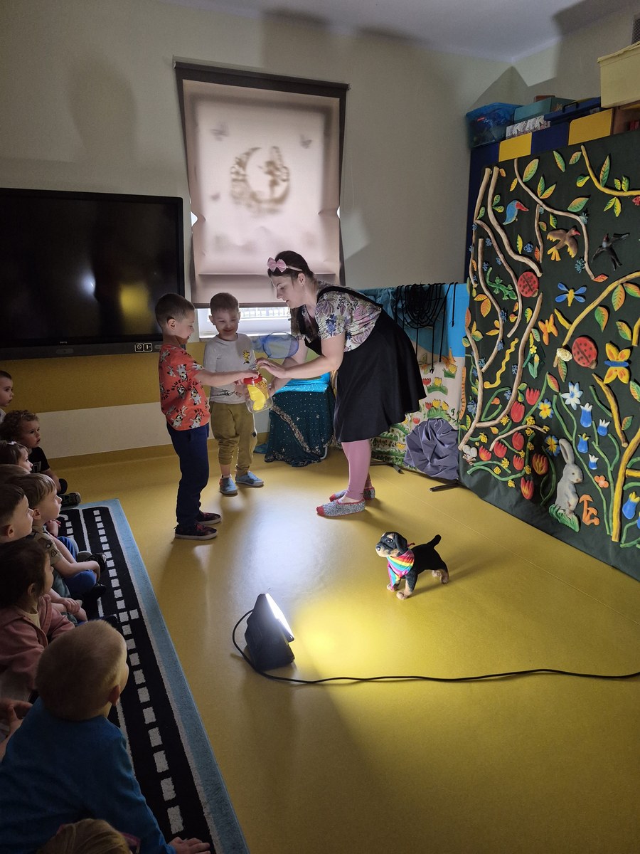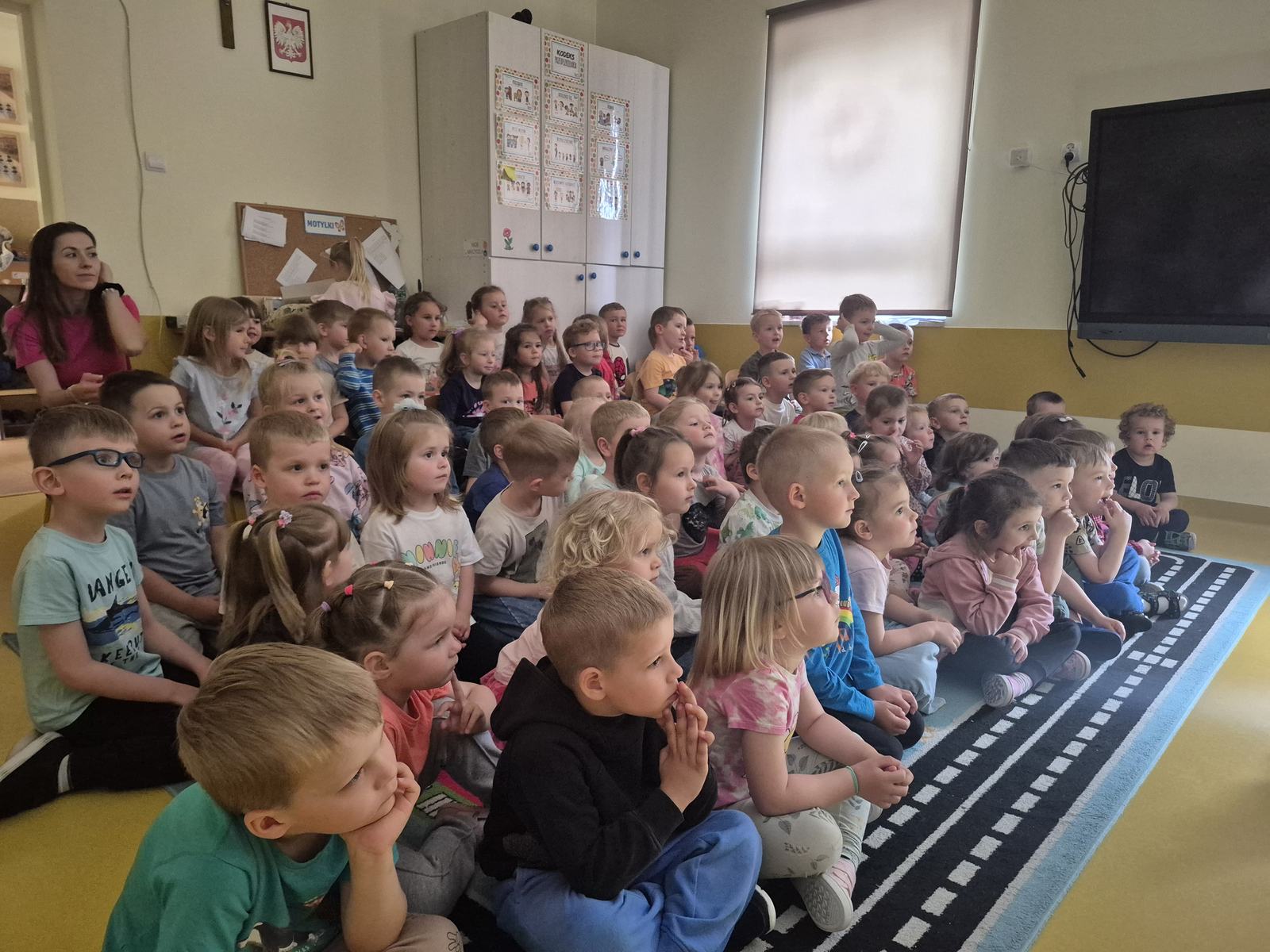 29 maja przedszkolaki obejrzały spektakl pt.: „Co w trawie piszczy?” w wykonaniu grupy artystycznej „Pasja” z Białegostoku. Teatrzyk opowiadał ciekawą historię o życiu owadów na łące. Aktorzy zachęcając dzieci do wspólnej zabawy w znakomity sposób poszerzyli wiedzę dzieci o zagadnienia przyrodnicze.