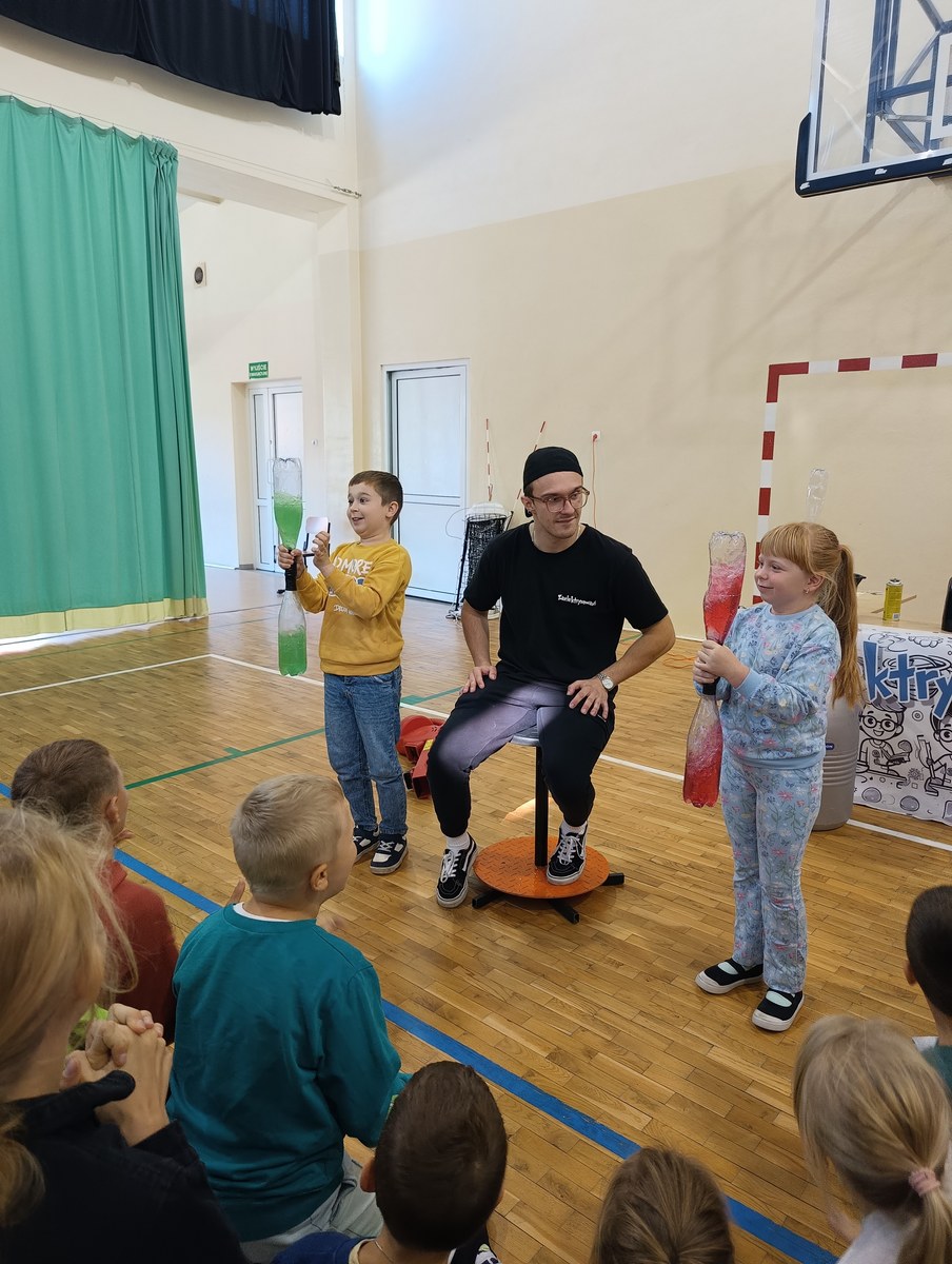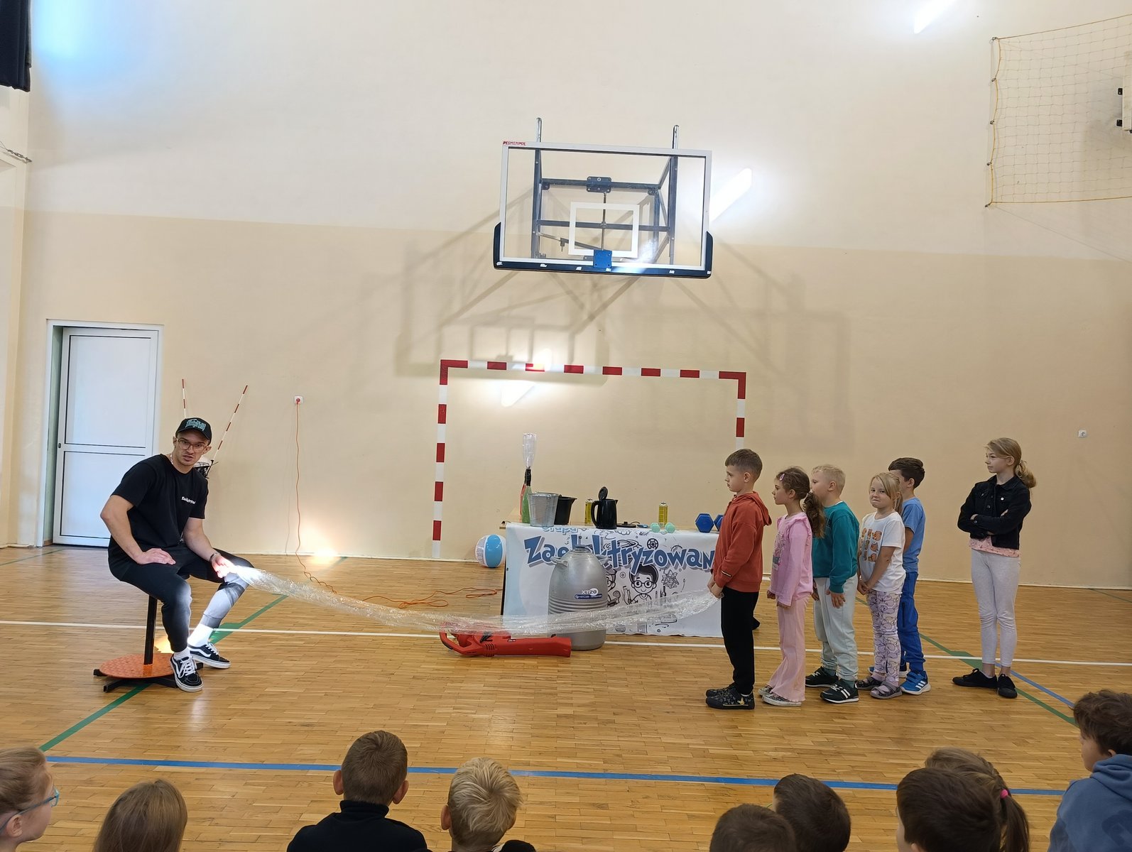 Podczas zajęć uczniowie mieli okazję obserwować efektowne doświadczenia oraz poszerzyć swoją wiedzę o zjawiskach zachodzących w otaczającym nas świecie. Pokaz spotkał się z dużym zainteresowaniem i entuzjazmem, a dzięki połączeniu nauki z dobrą zabawą z pewnością na długo pozostanie w pamięci uczestników.