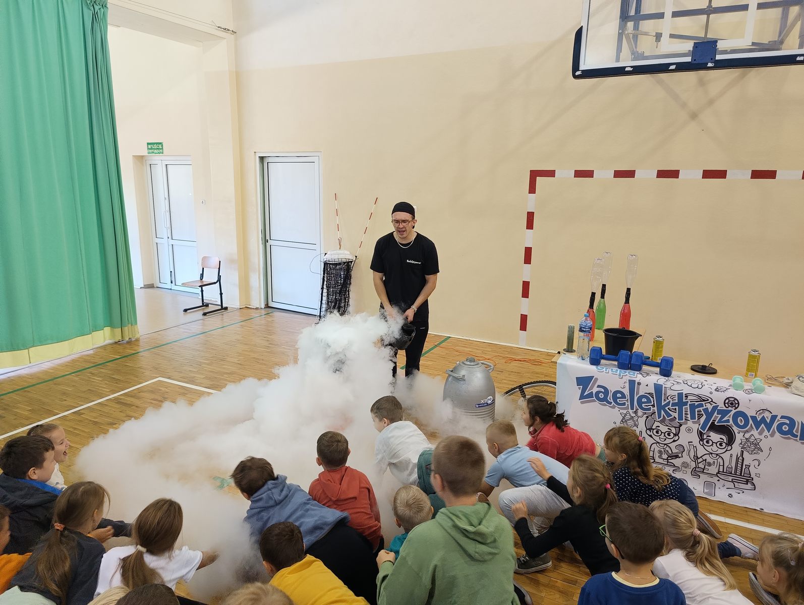 24 września uczniowie naszej szkoły od klas 0 do VIII uczestniczyli w pokazie naukowym przygotowanym przez grupę edukacyjną „Zaelektryzowani”.