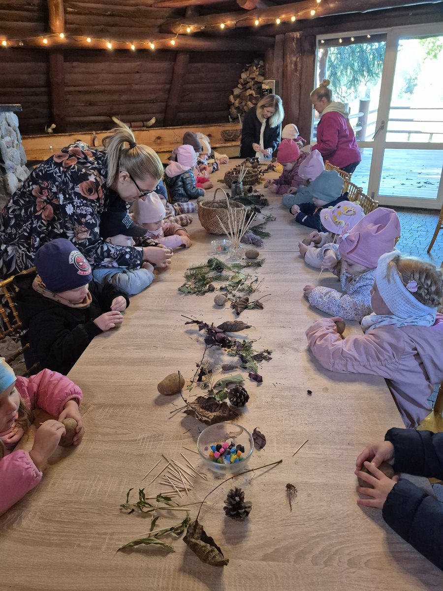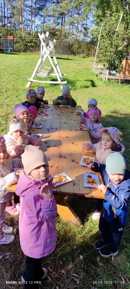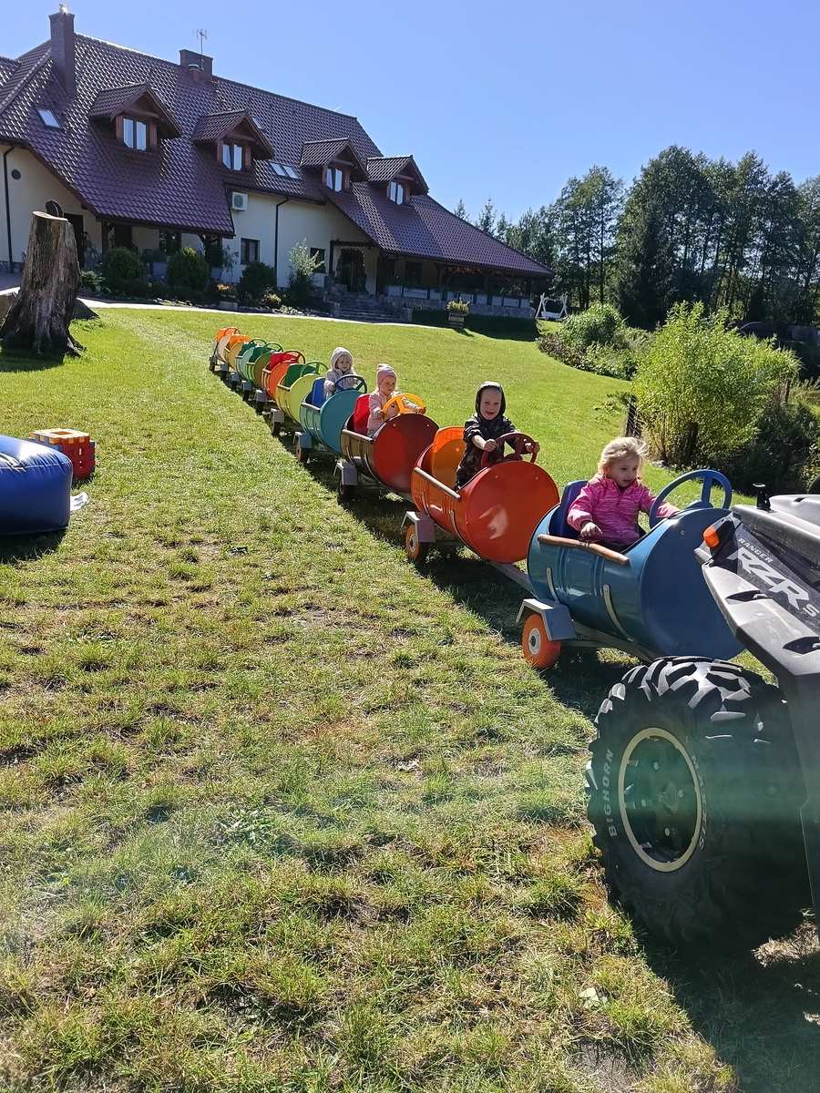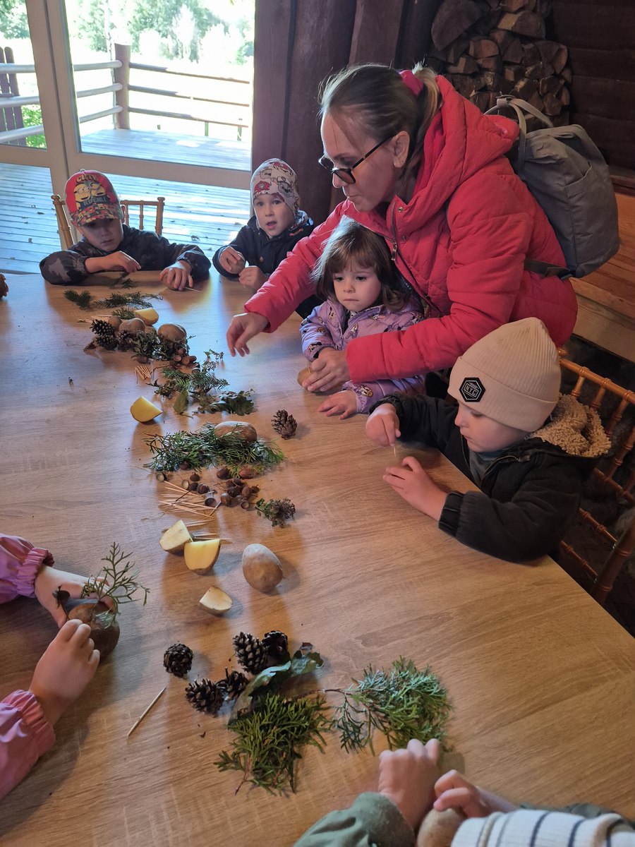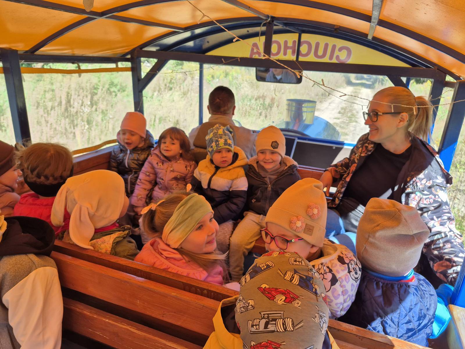 Jesień to piękna, kolorowa pora roku. Dzieci 4-letnie z grup „Pszczółki” i „Motylki” spędziły piękny jesienny dzień w siedlisku „Dębowa Dolina” w Skuszewie pod Wyszkowem. Aktywnie wykorzystały czas na świeżym powietrzu, obserwując nadbużańską jesień podczas terenoznawczej podróży „lokomotywą” . Dzieci uczestniczyły w warsztatach edukacyjnych „Święto pieczonego ziemniaka”. Wykorzystując ziemniaki i inne dary przyrodnicze wykonały pomysłowe ludzik i zwierzątka. Z ziemniaków przedszkolaki wykonywały również frytki, które bardzo im smakowały. Doskonałą zabawę także zapewniły dodatkowe atrakcje takie jak dmuchany zamek oraz ,,rekin", chusta animacyjna, plac zabaw, trampoliny, przejażdżki w wagonikach. Na koniec przedszkolaki zjadły kiełbaski z grilla i pożegnały się z właścicielami wyjątkowego miejsca.