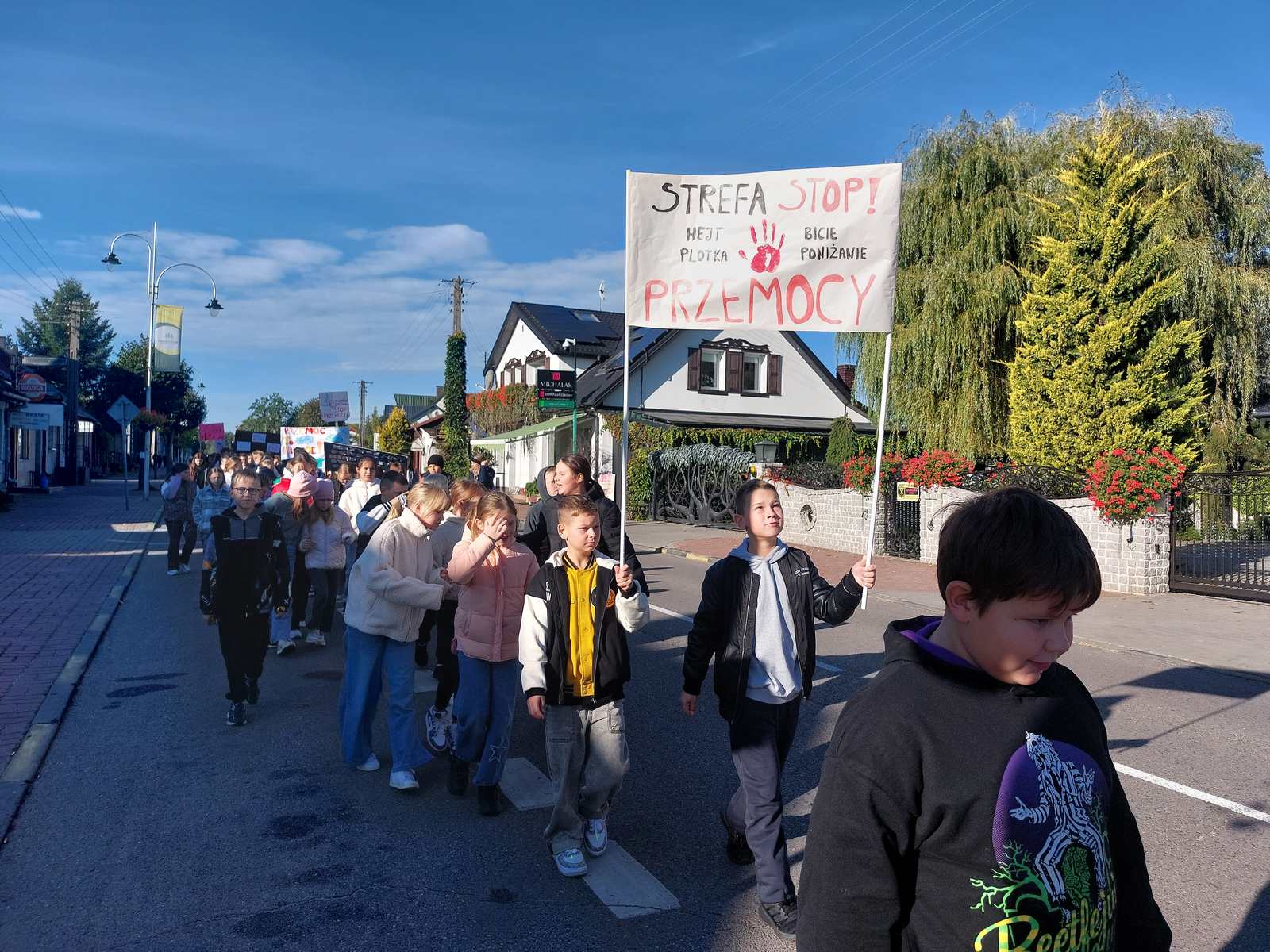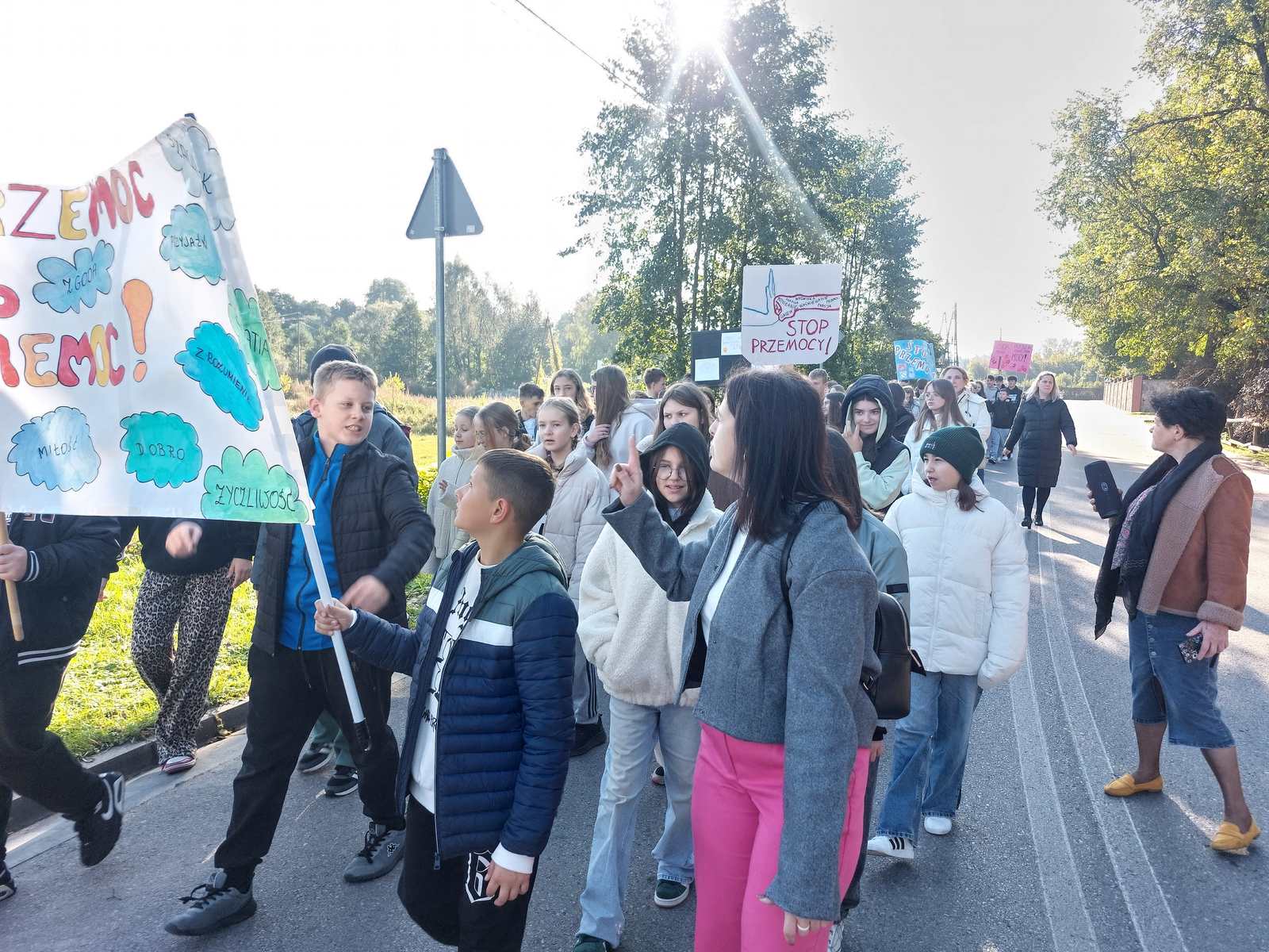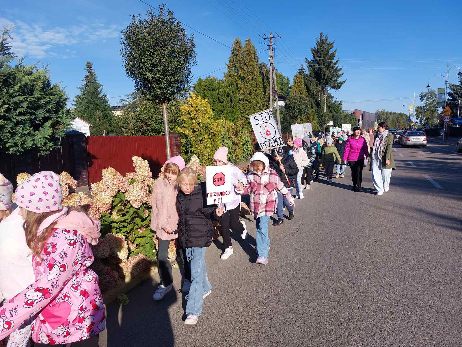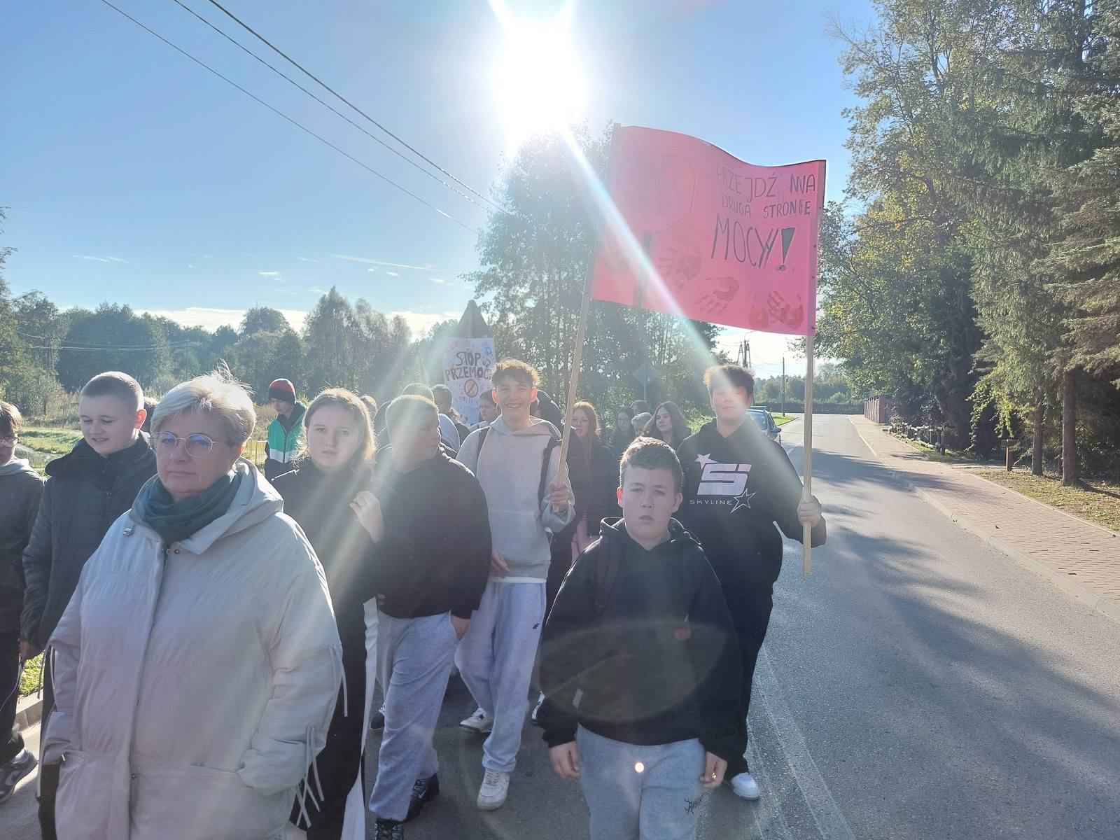 Uczniowie i nauczyciele wzięli udział w przemarszu ulicami Długosiodła, niosąc własnoręcznie przygotowane plakaty promujące życie bez przemocy. Wspierani przez funkcjonariuszy Komisariatu Policji, daliśmy wyraźny sygnał, że szacunek, życzliwość i tolerancja to wartości, które powinny towarzyszyć nam każdego dnia. Marszowi towarzyszyła symboliczna piosenka „Tolerancja” Stanisława Soyki, podkreślająca znaczenie wzajemnego zrozumienia.