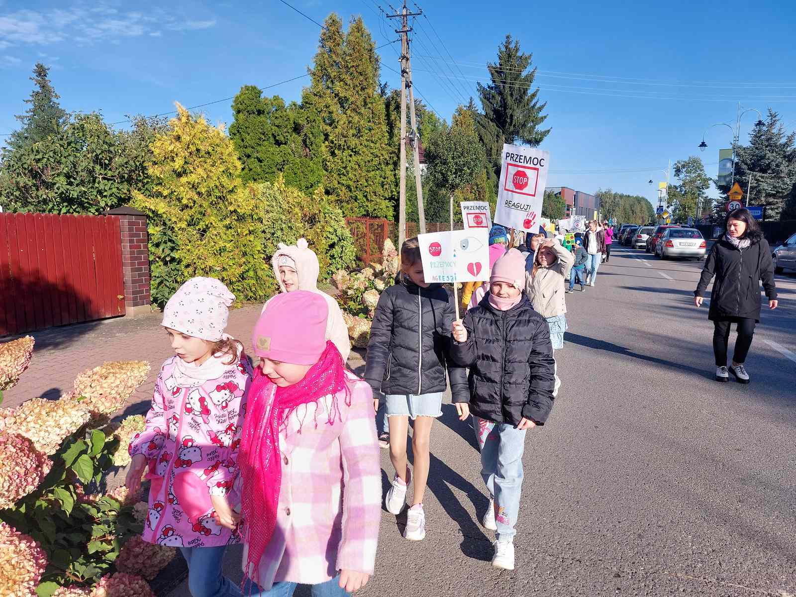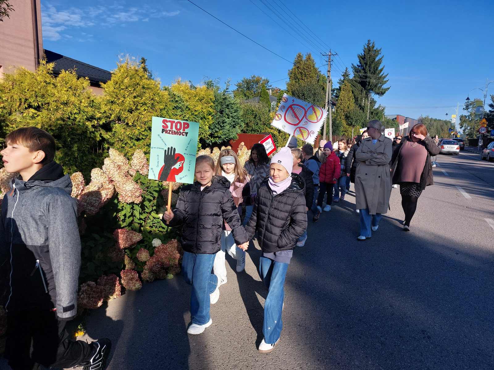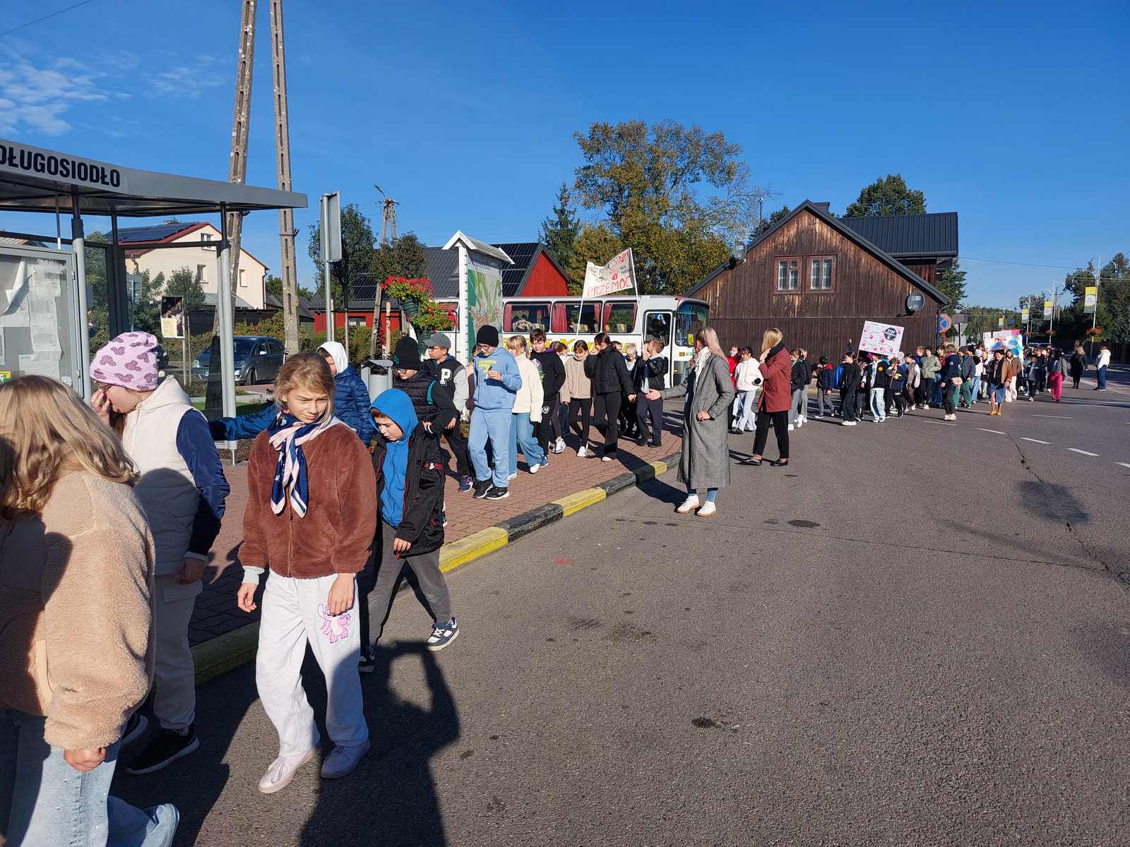 Uczniowie i nauczyciele wzięli udział w przemarszu ulicami Długosiodła, niosąc własnoręcznie przygotowane plakaty promujące życie bez przemocy. Wspierani przez funkcjonariuszy Komisariatu Policji, daliśmy wyraźny sygnał, że szacunek, życzliwość i tolerancja to wartości, które powinny towarzyszyć nam każdego dnia. Marszowi towarzyszyła symboliczna piosenka „Tolerancja” Stanisława Soyki, podkreślająca znaczenie wzajemnego zrozumienia.