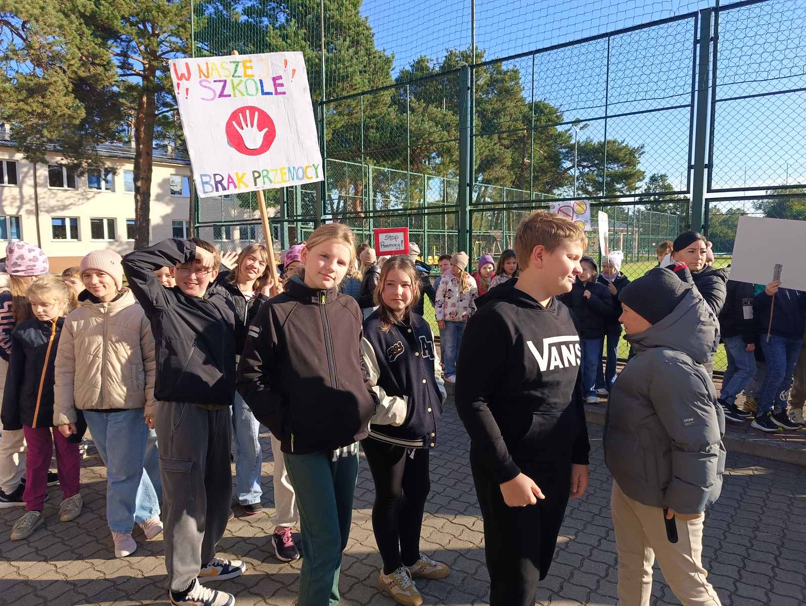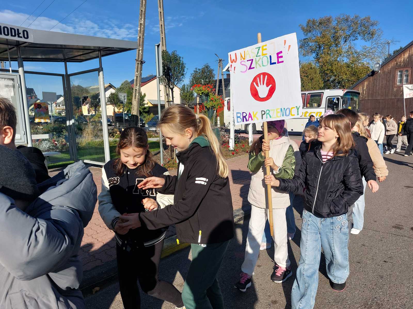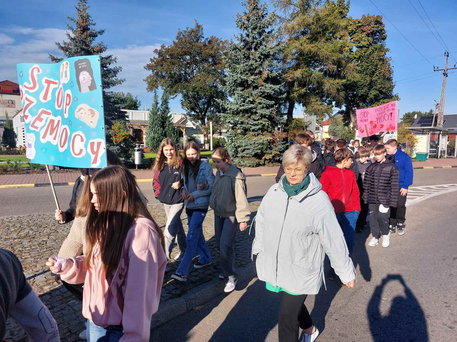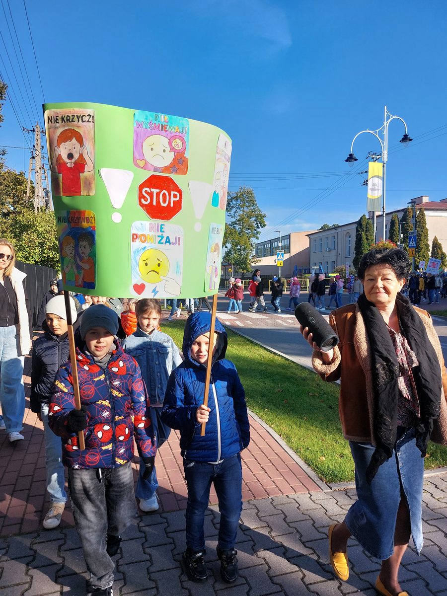Uczniowie i nauczyciele wzięli udział w przemarszu ulicami Długosiodła, niosąc własnoręcznie przygotowane plakaty promujące życie bez przemocy. Wspierani przez funkcjonariuszy Komisariatu Policji, daliśmy wyraźny sygnał, że szacunek, życzliwość i tolerancja to wartości, które powinny towarzyszyć nam każdego dnia. Marszowi towarzyszyła symboliczna piosenka „Tolerancja” Stanisława Soyki, podkreślająca znaczenie wzajemnego zrozumienia.