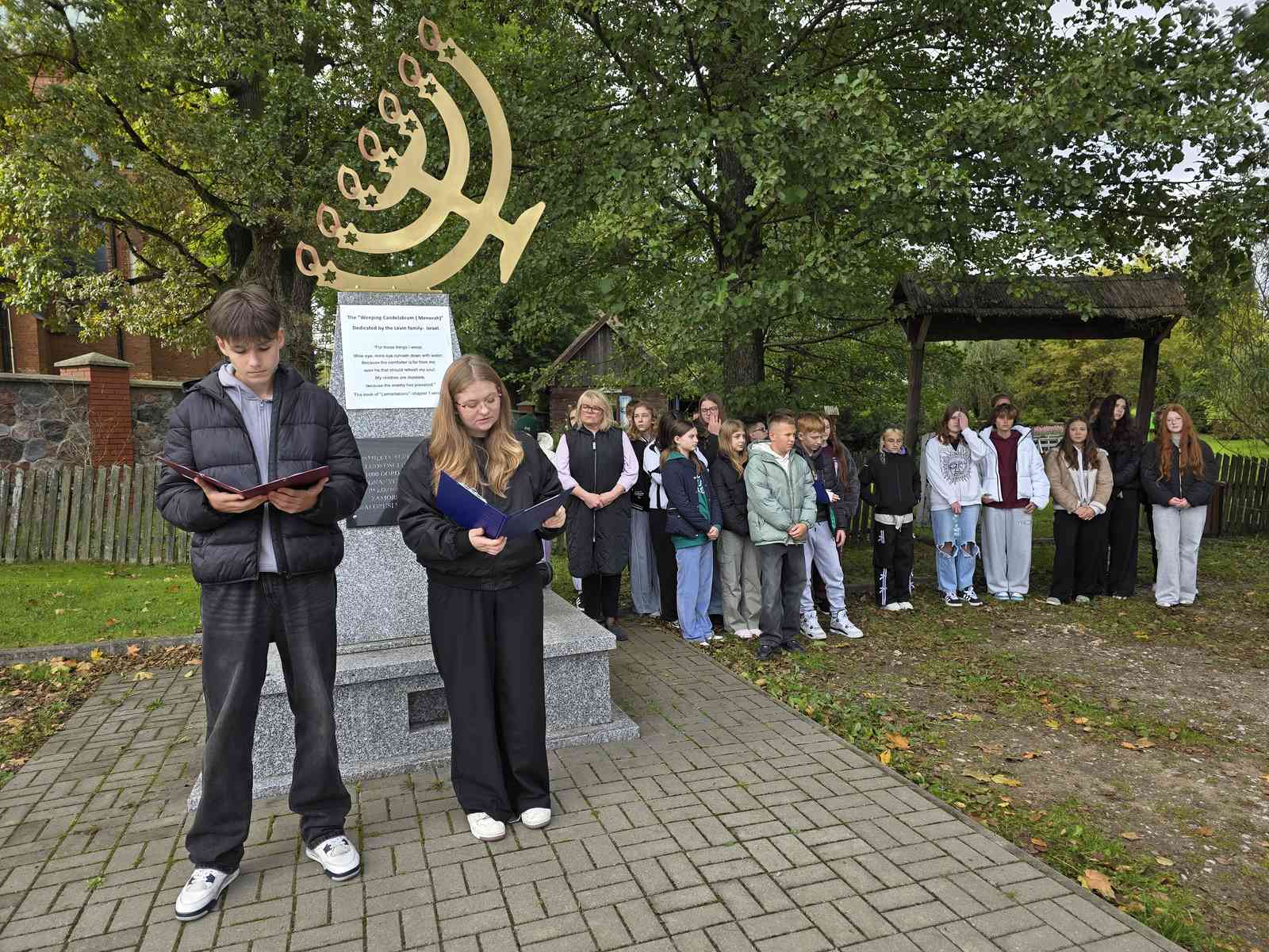 Młodzież spotkała się przy pomniku poświęconym pamięci dawnych żydowskich mieszkańców Długosiodła, odsłoniętym w 2019 roku. Podczas uroczystości uczniowie złożyli kwiaty, zapalili znicz i położyli kamyki – symbol pamięci. Był to moment zadumy nad losem tych, których życie zostało brutalnie przerwane.