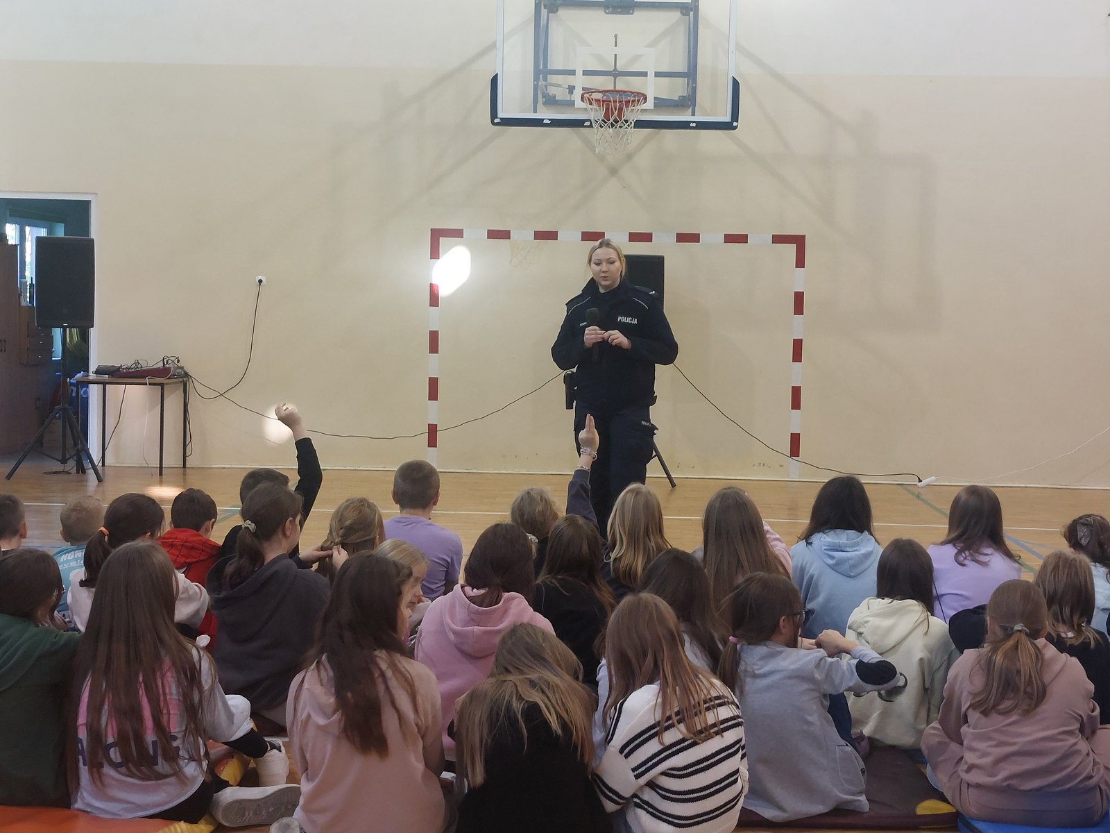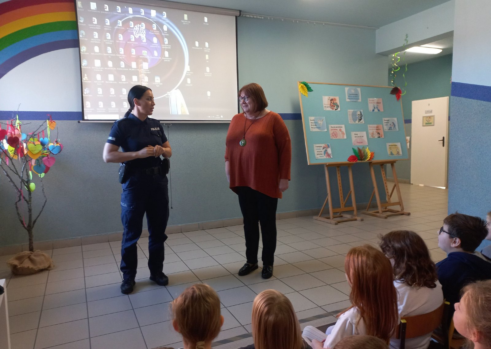 20 października w naszej szkole odbyło się spotkanie uczniów z funkcjonariuszami policji. Podczas spotkania dzieci dowiedziały się, jak bezpiecznie zachowywać się w drodze do szkoły, w Internecie oraz w kontaktach z nieznajomymi. Policjantki przypomniał także zasady odpowiedzialnego zachowania i reagowania w sytuacjach zagrożenia.