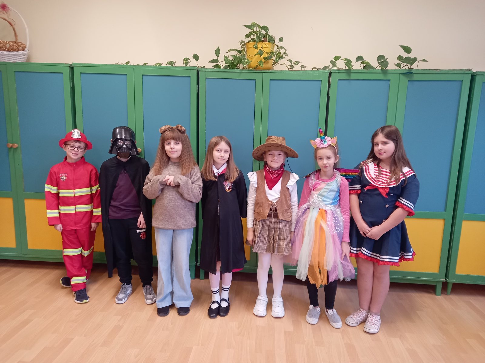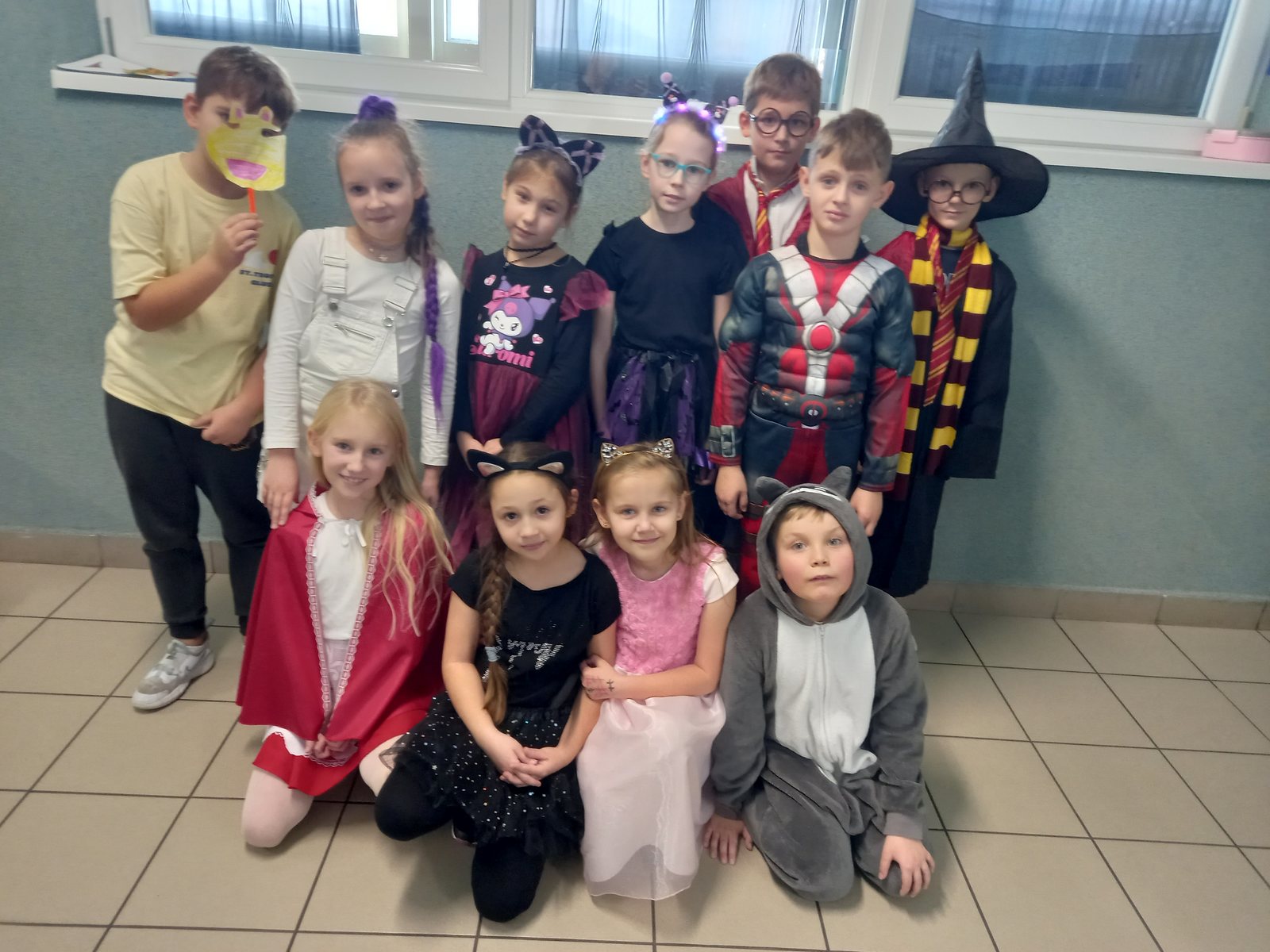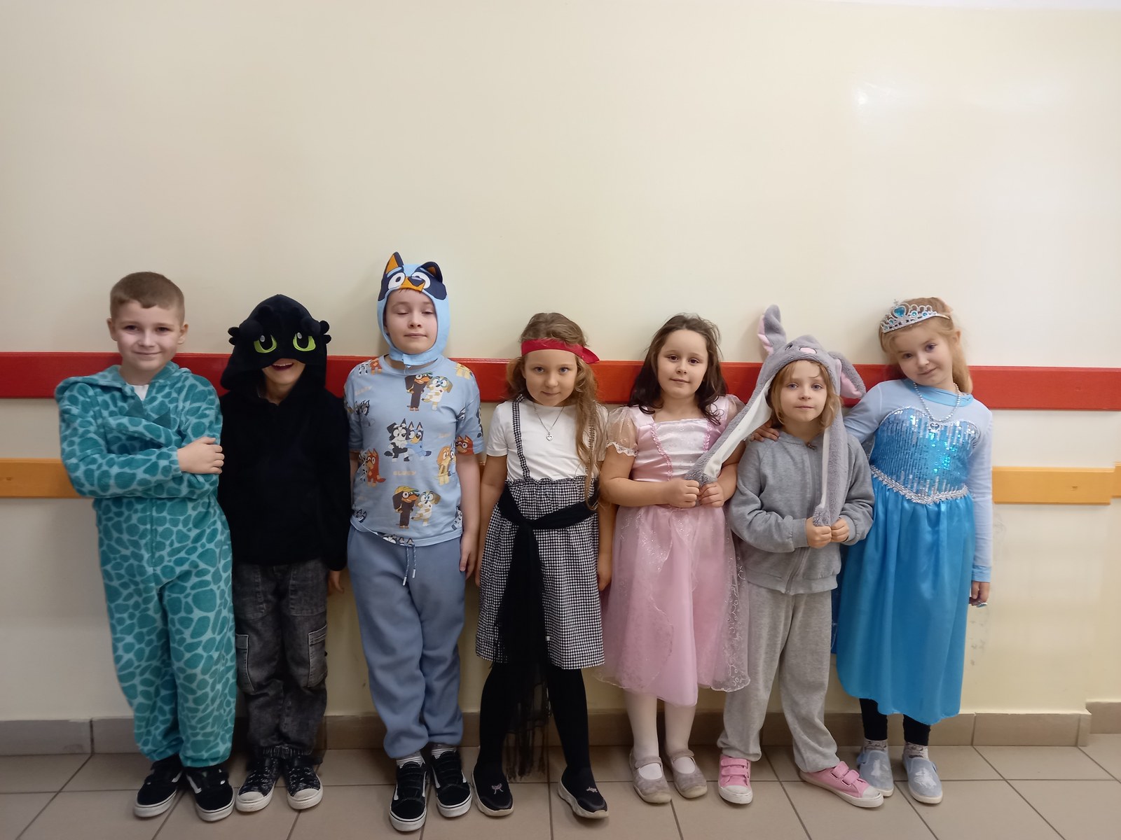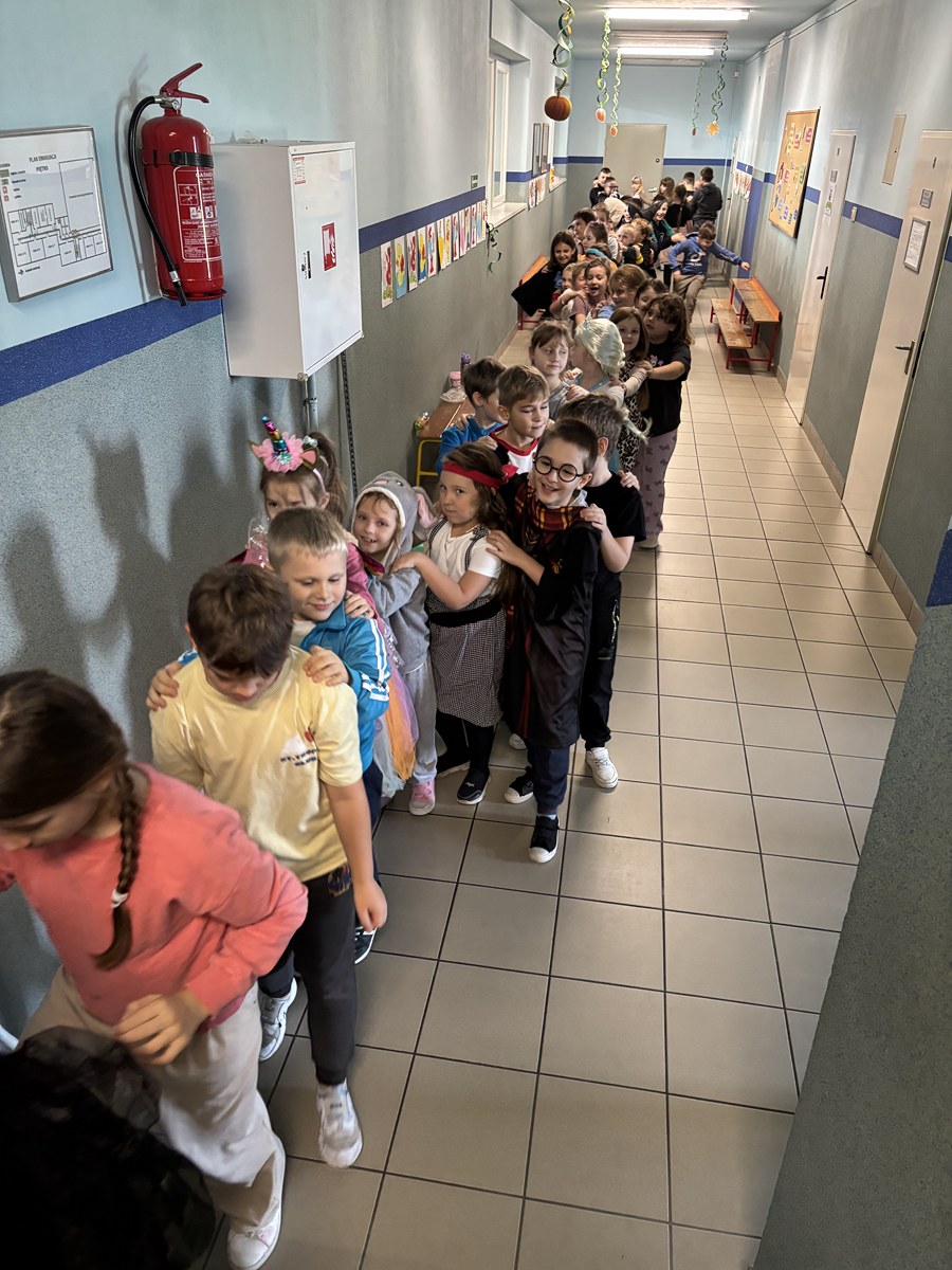 Dziś w naszej szkole obchodziliśmy Dzień Postaci z Bajek! To był wyjątkowy, kolorowy i pełen radości dzień. Dzieci przyszły przebrane za swoich ulubionych bohaterów z bajek – można było spotkać księżniczki, superbohaterów, zwierzątka i wiele innych postaci.