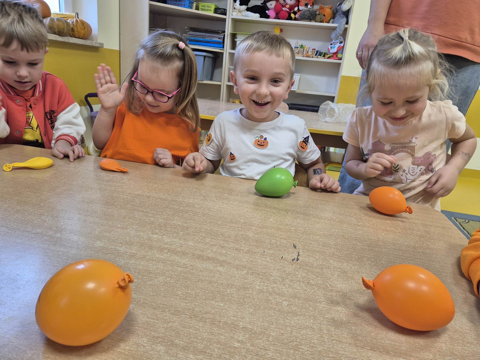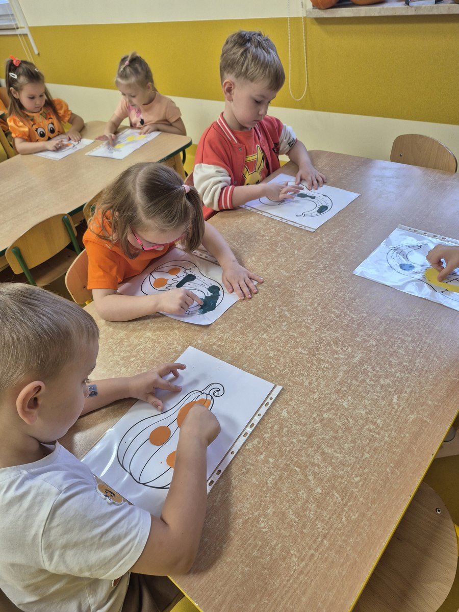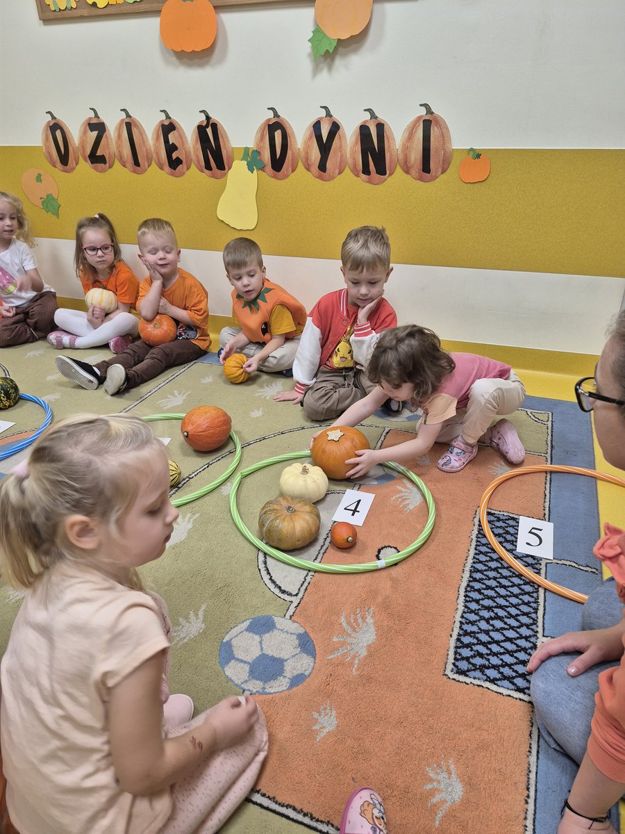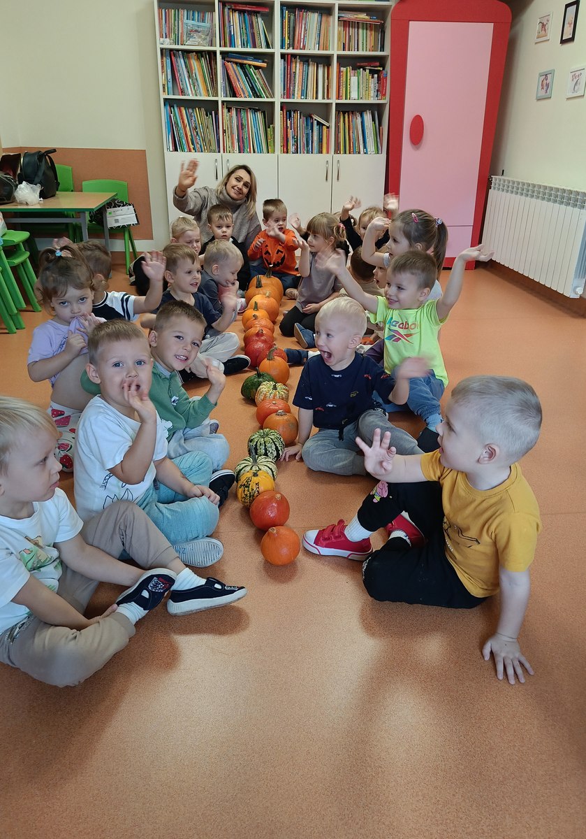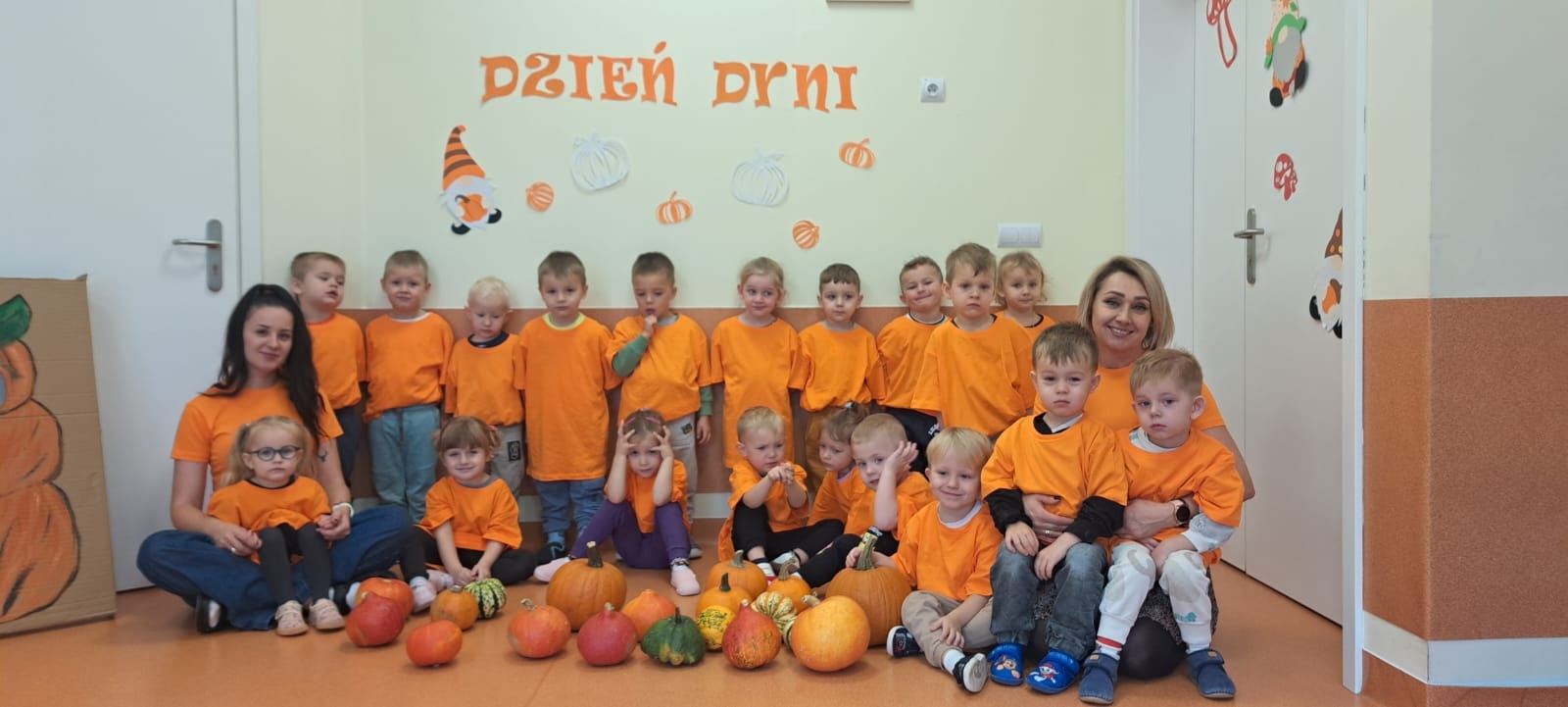 W naszym przedszkolu odbyły się wyjątkowe obchody Dnia Dyni! Przedszkolaki wzięły udział w wielu wesołych aktywnościach – były zabawy ruchowe, twórcze prace plastyczne oraz eksperymenty z dynią w roli głównej.Dzieci z ogromnym zaangażowaniem odkrywały, co kryje w sobie to niezwykłe warzywo – liczyły pestki, badały zapach, dotykały miąższu i tworzyły piękne dyniowe prace. Na podwieczorek zajadały się pysznymi dyniowymi babeczkami, które wszystkim bardzo smakowały! To był dzień pełen uśmiechu, radości i wspólnej zabawy!