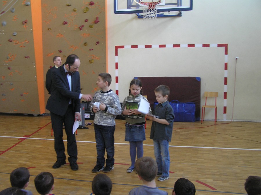 Lekcja muzyczna nosiła tytuł "Cztery pory roku". Jak zwykle odbył sie konkurs wiedzowy, w którym zmierzyli się Jakub Rychlicki z kl. Ia, Kornelia Solińska z kl. Ib i Krzysztof Drózd z kl. II. Największą wiedzą wykazał się Krzysztof, który otrzymał "muzyczny" kubek.