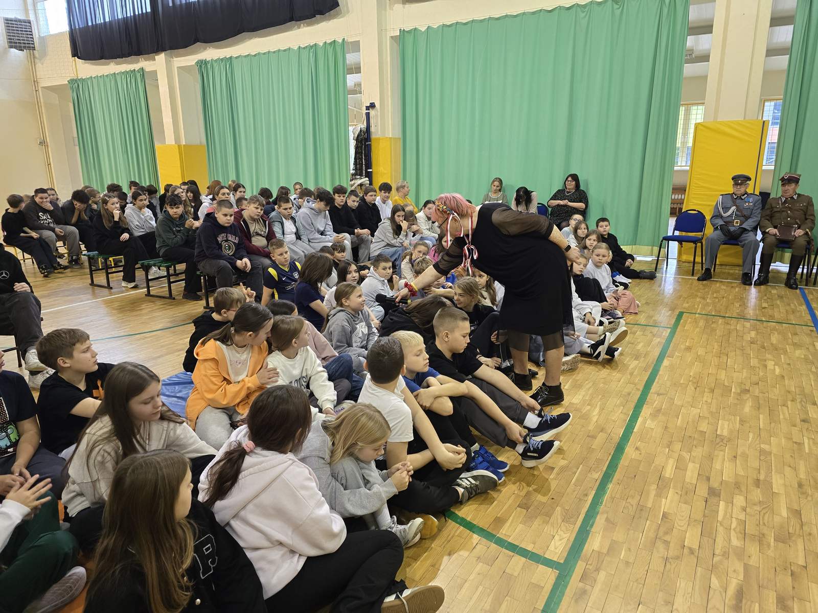 Młodzież brała aktywny udział w wydarzeniu, z zainteresowaniem słuchając, zadając pytania i uczestnicząc w przygotowanych elementach artystycznych.