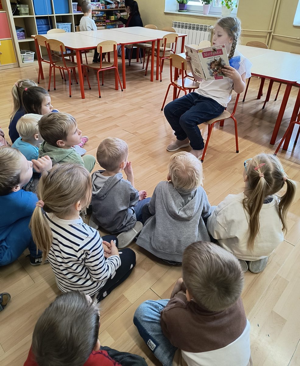 W naszym Zespole ruszyła wyjątkowa inicjatywa wspierająca akcję „Czytające przedszkole”. Jej celem jest rozwijanie zainteresowań czytelniczych u najmłodszych oraz zachęcanie dzieci do częstszego obcowania z książką. Uczniowie klasy trzeciej z dużym zaangażowaniem wcielają się w rolę małych lektorów, czytając przedszkolakom ulubione bajki i opowiadania. 20 listopada dwie uczennice klasy trzeciej zaprezentowały dzieciom wspaniałe przygody „Martynki”. Przedszkolaki w wieku 5 i 6 lat z ogromnym zaciekawieniem słuchały opowieści, a starsze koleżanki z wielką starannością i dumą odczytywały kolejne fragmenty książki. Wspólne czytanie to nie tylko świetna zabawa, ale również doskonała okazja do budowania więzi między dziećmi, rozwijania wyobraźni, wzbogacania słownictwa oraz uczenia się wzajemnego szacunku. Cieszymy się, że inicjatywa spotkała się z tak dużym entuzjazmem zarówno wśród przedszkolaków, jak i uczniów klas trzecich. Już planujemy kolejne czytelnicze spotkania!