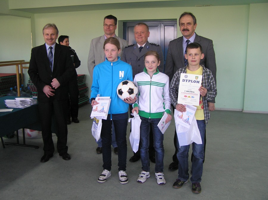 Do konkursu przystąpili uczniowie ze szkół podstawowych i gimnazjów, którzy uzyskali najlepsze wyniki w eliminacjach gminnych. Pierwszy etap zawodów polegał na rozwiązaniu testu, zawierającego pytania dotyczące zagadnień ruchu drogowego. Po części pisemnej zawodnicy musieli wykonać zadania praktyczne, w zakres których wchodziło pokonanie na rowerze toru przeszkód oraz zaprezentowanie umiejętności w udzielania pierwszej pomocy. Na każdym z etapów nasi zawodnicy drużynowo byli najlepsi. Po zaciętej rywalizacji komisja wyłoniła zwycięzców. W kategorii szkół podstawowych pierwsze miejsce zajęła nasza drużyna w składzie: Maria Brejnak z kl. VI b, Katarzyna Borczon z kl. VI b i Mateusz Kot z kl. VI a. Wszyscy zwycięzcy otrzymali dyplomy oraz telefony komórkowe.