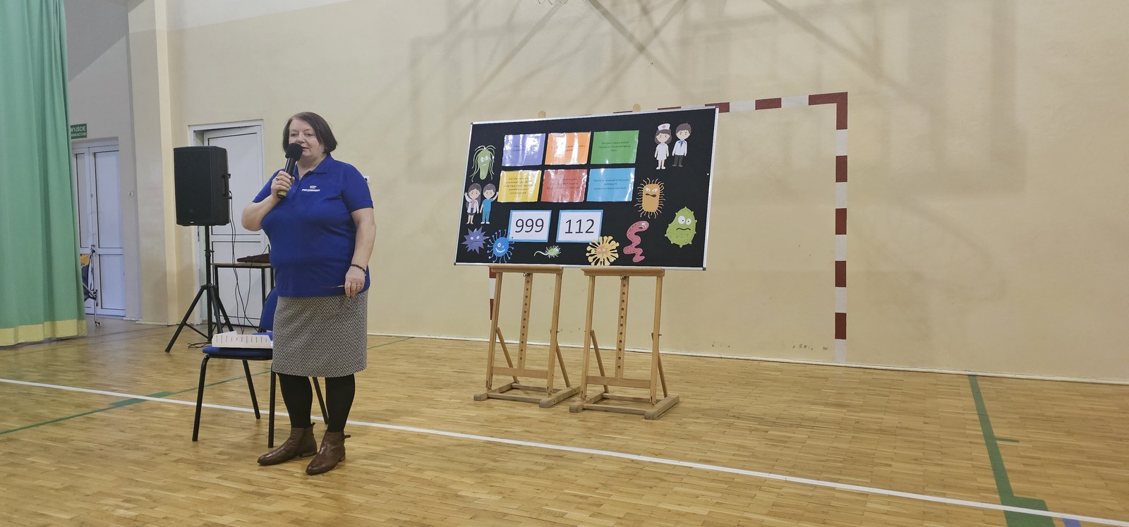 Pani Krystyna rozpoczęła swoje wystąpienie od omówienia podstawowych zasad higieny osobistej. Podkreśliła, jak ważne jest regularne mycie rąk, szczególnie w kontekście zapobiegania różnym infekcjom. Uczniowie mieli okazję dowiedzieć się, jak prawidłowo myć ręce oraz kiedy jest to szczególnie istotne, na przykład przed posiłkami czy po powrocie do domu.