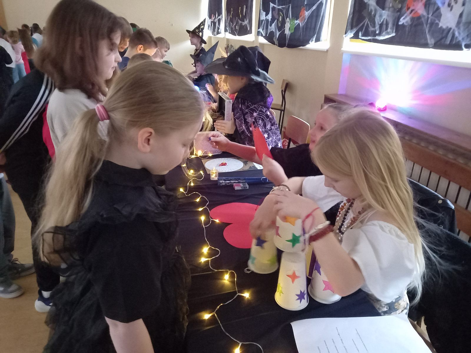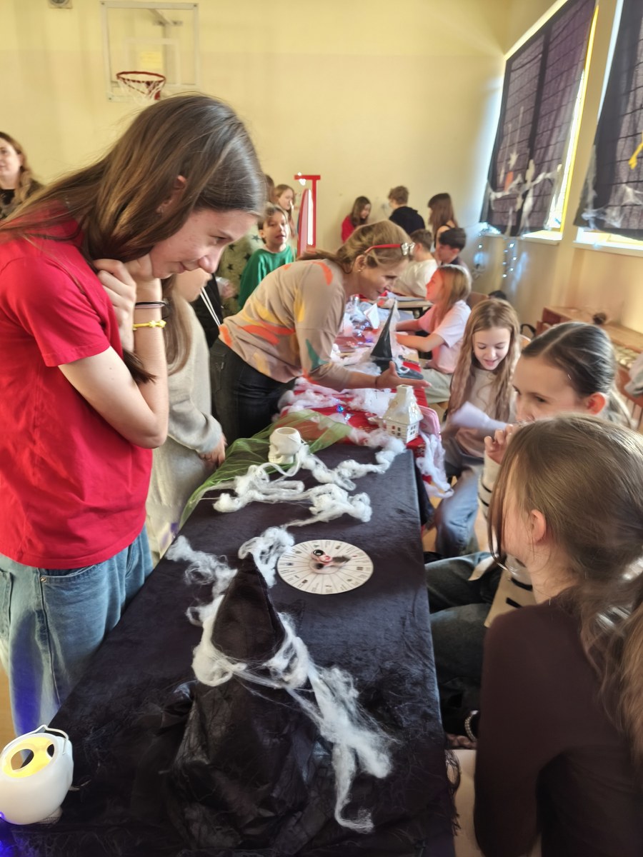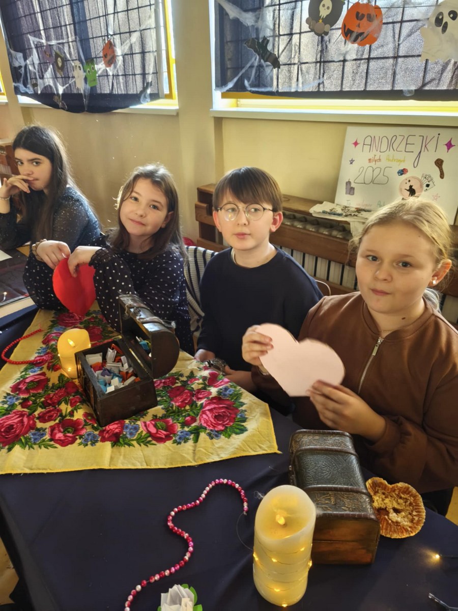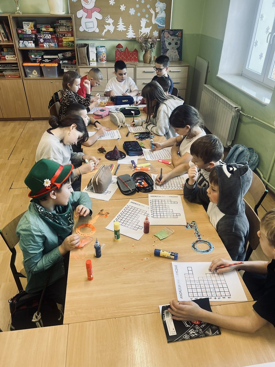 W świetlicy szkolnej również odbyły się zajęcia tematyczne związane z andrzejkami – uczniowie wykonywali wróżby, poznawali tradycje i uczestniczyli w kreatywnych zabawach, dzięki którym mogli przenieść się w świat dawnych zwyczajów.