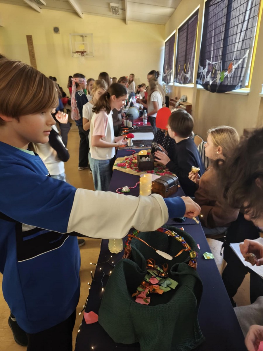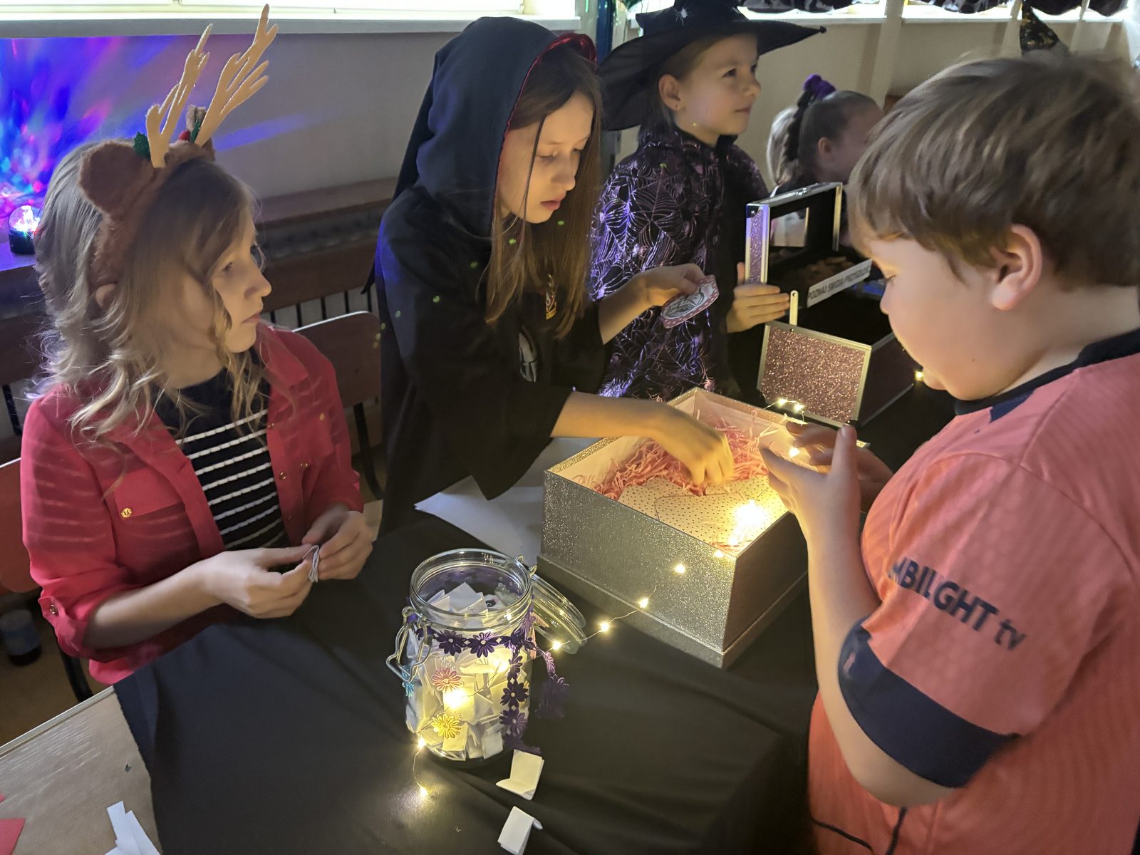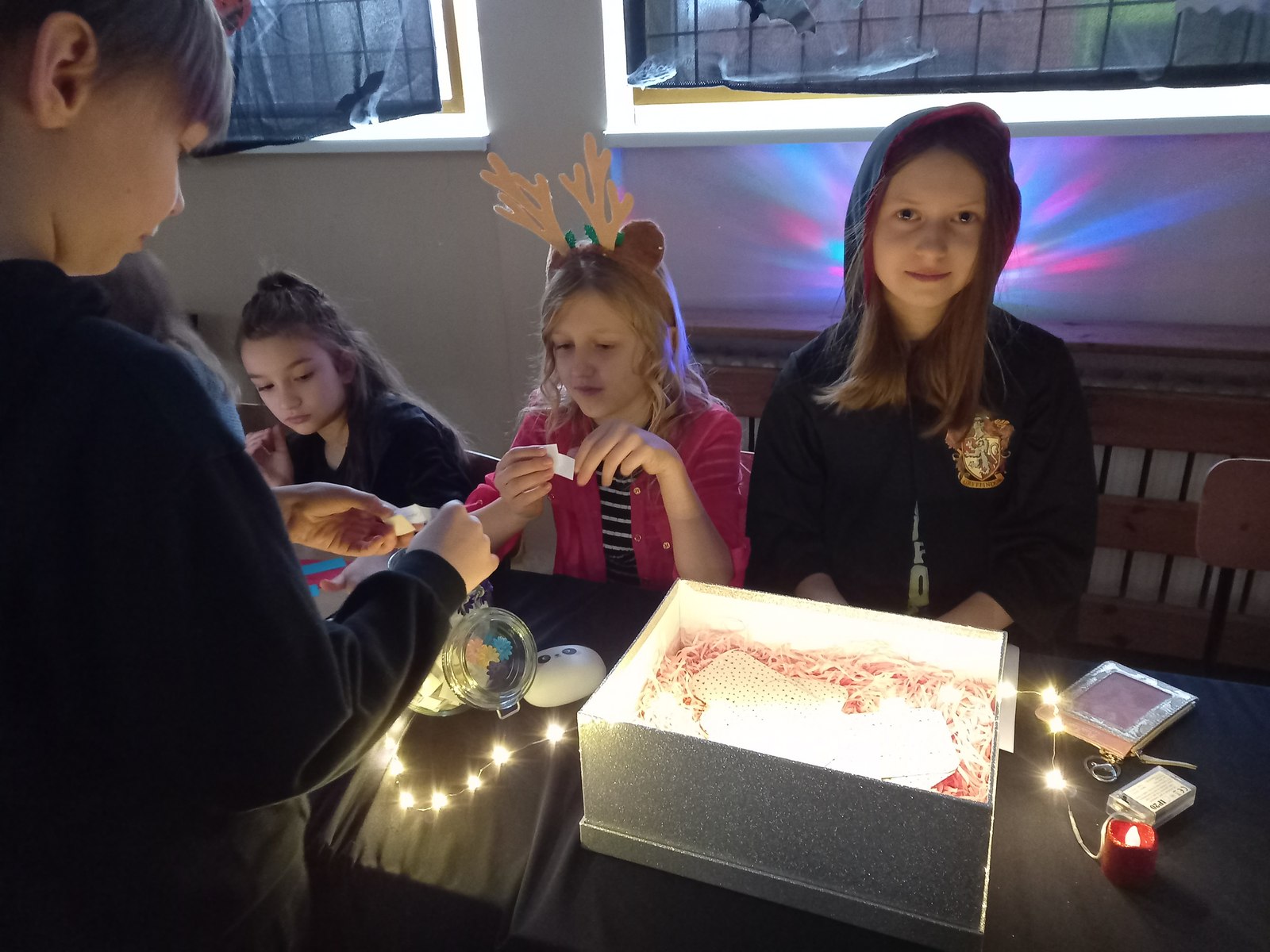 W świetlicy szkolnej również odbyły się zajęcia tematyczne związane z andrzejkami – uczniowie wykonywali wróżby, poznawali tradycje i uczestniczyli w kreatywnych zabawach, dzięki którym mogli przenieść się w świat dawnych zwyczajów.
