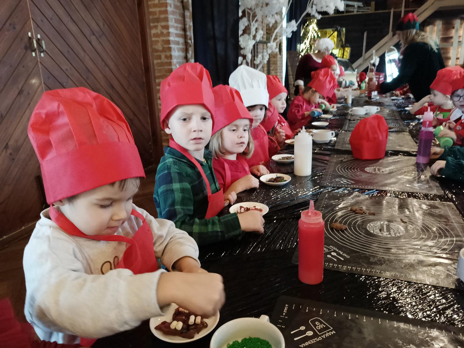 Dzieci uczestniczyły w: warsztatach piernikowych, gdzie samodzielnie ozdabiały smaczne pierniczki, pisaniu listów, spotkaniu z Grinchem, który mimo swojego charakteru wywołał mnóstwo śmiechu i radości, świątecznym disco pełnym tańców i zabawy, wizycie u osiołka Pioruna, mini sesji zdjęciowej, oraz zjadły pyszny, ciepły obiad.