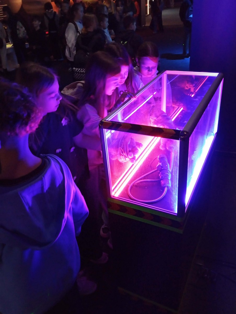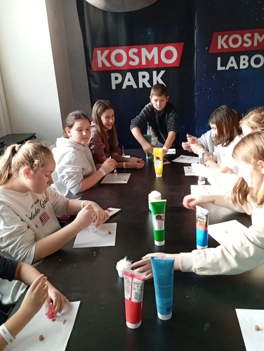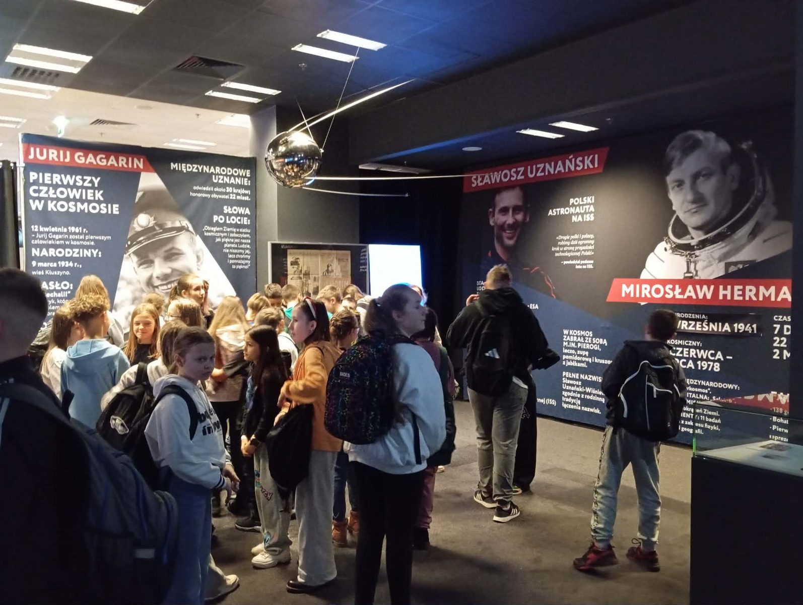 Pierwszym punktem wyjazdu była interaktywna wystawa Kosmopark. To miejsce, w którym można poczuć się jak prawdziwy astronauta. Uczniowie mogli zobaczyć modele rakiet i planet, przejść przez kosmiczne tunele oraz wykonać wiele doświadczeń związanych z grawitacją i przestrzenią kosmiczną. Największe emocje wzbudził symulator lotu w kosmos, który pozwala poczuć, jak wygląda start rakiety. Kolejnym punktem było kino, gdzie obejrzeliśmy film pełen humoru i zwrotów akcji „Zwierzogród 2”. Seans wszystkim bardzo się podobał – nie brakowało śmiechu oraz wzruszających momentów.