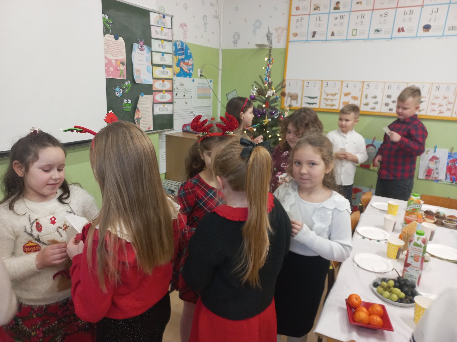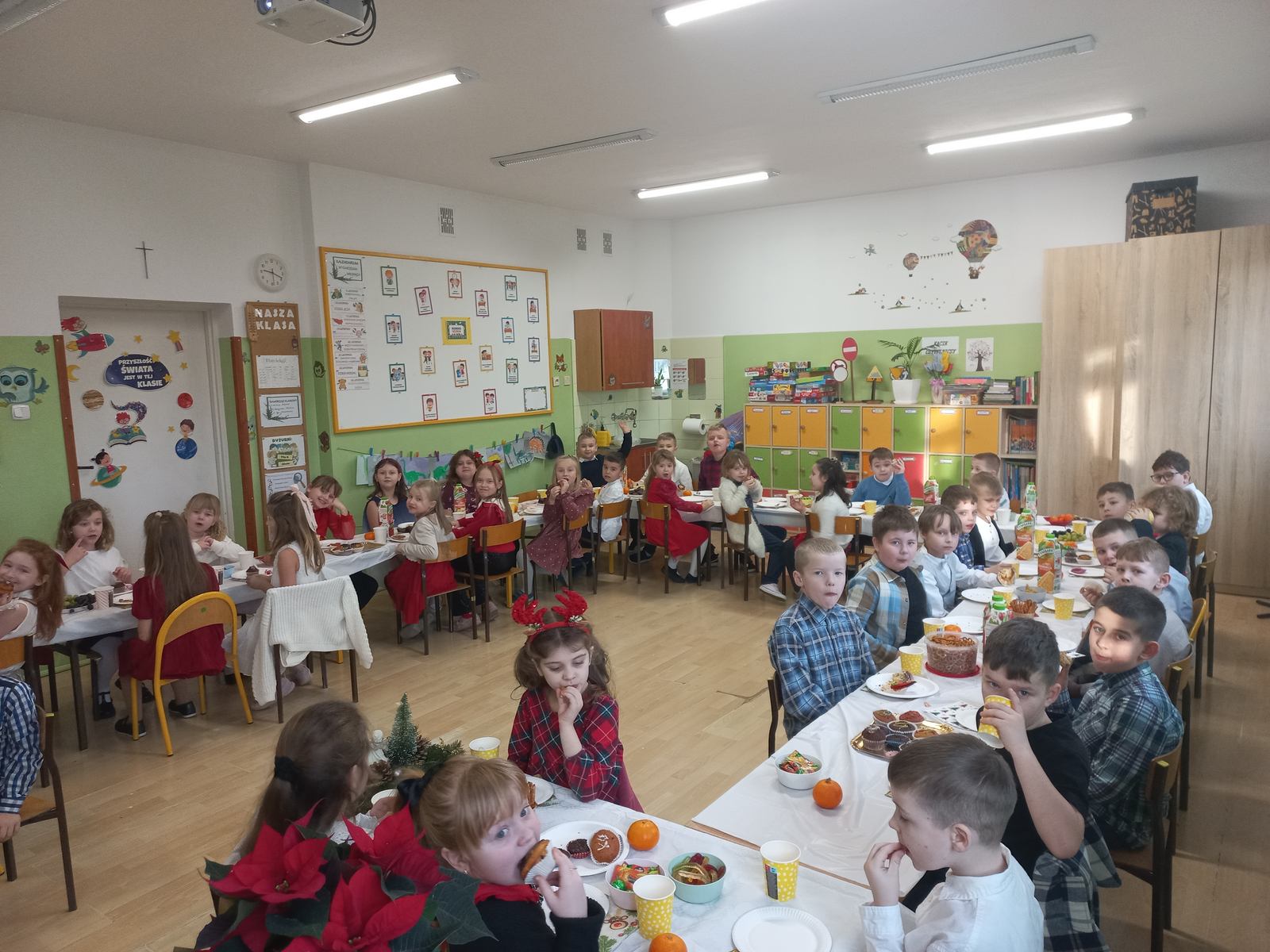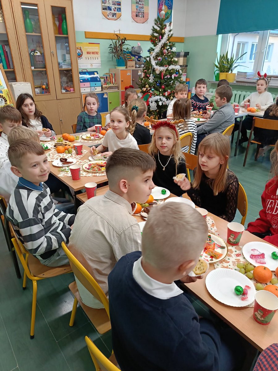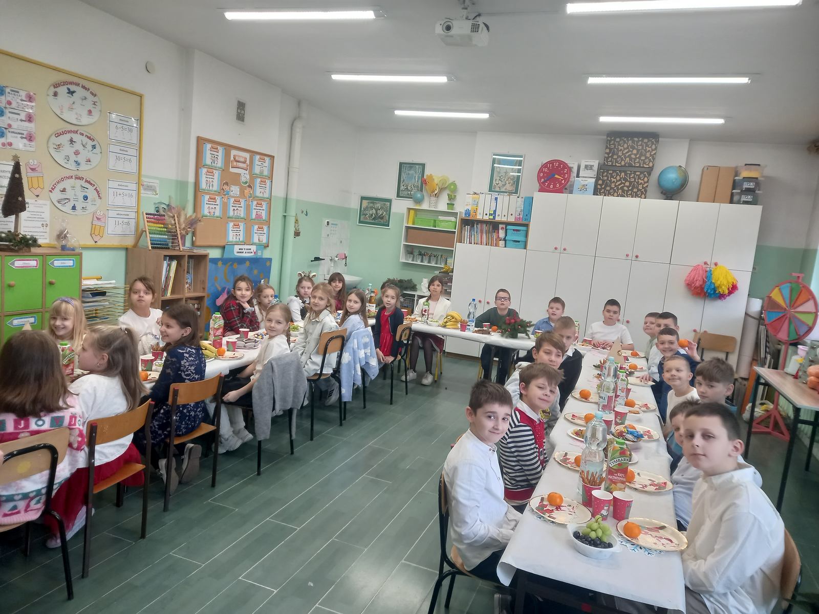 17 grudnia w klasach I–III odbyły się świąteczne spotkania bożonarodzeniowe, które wprowadziły uczniów w wyjątkowy, pełen ciepła i radości nastrój. Był to czas wspólnego kolędowania, dzielenia się opłatkiem, składania życzeń oraz rozmów o tradycjach Bożego Narodzenia. Te wydarzenie sprzyjało integracji, budowaniu wzajemnej życzliwości i poczucia wspólnoty, a dla najmłodszych były piękną okazją do przeżywania magii świąt w gronie kolegów i nauczycieli.