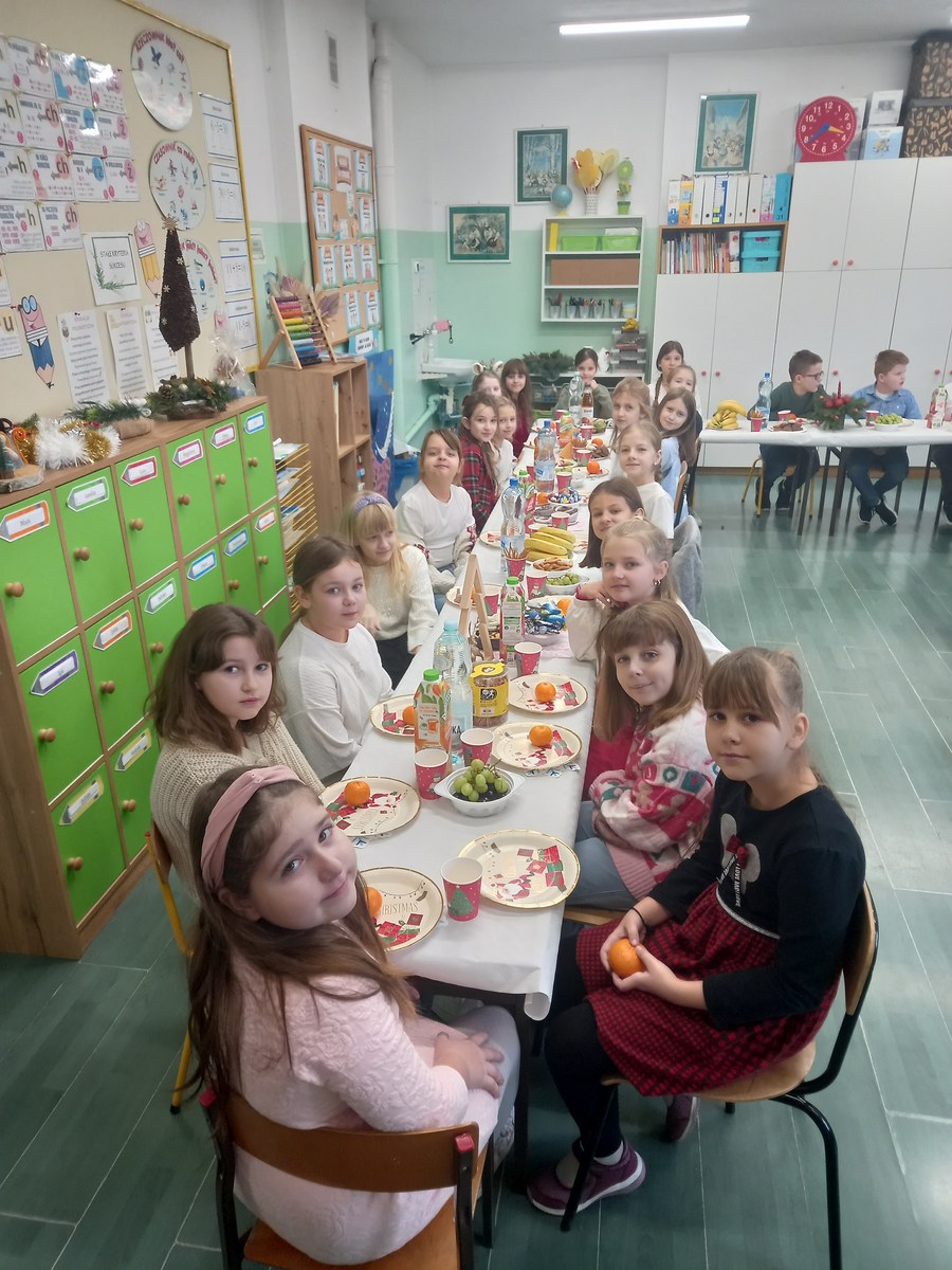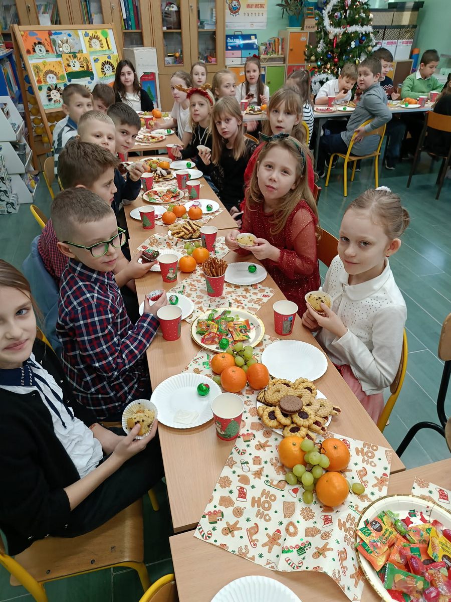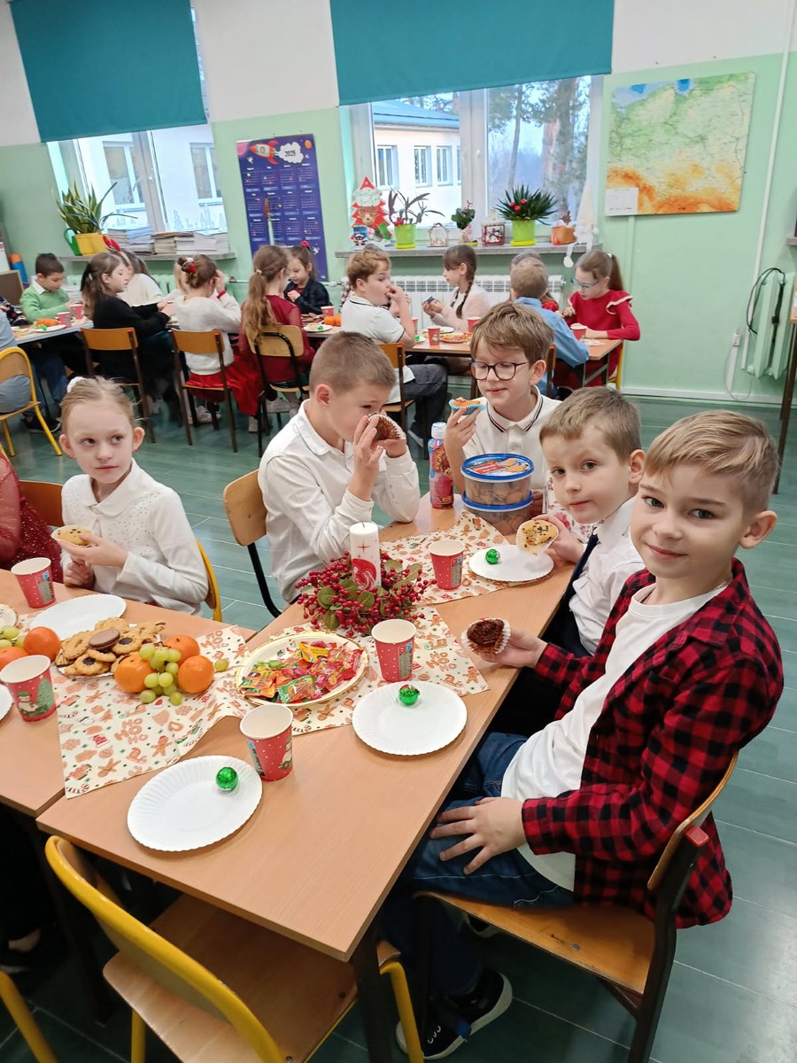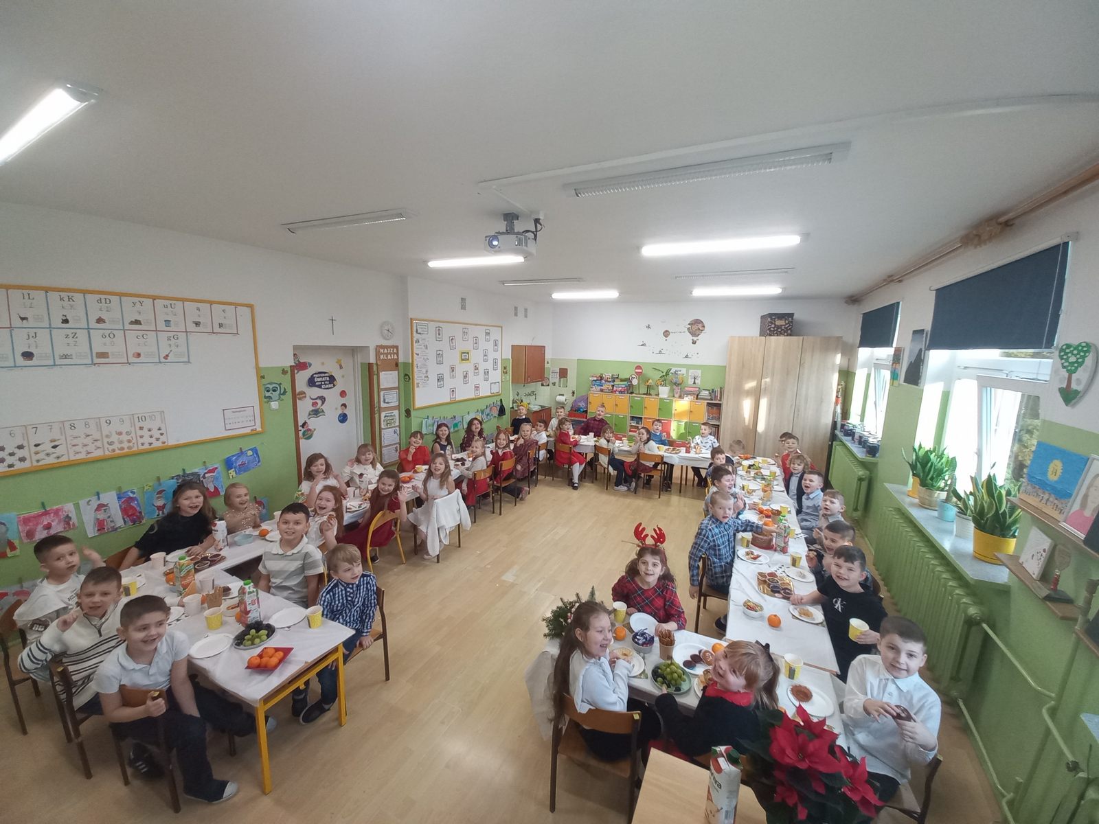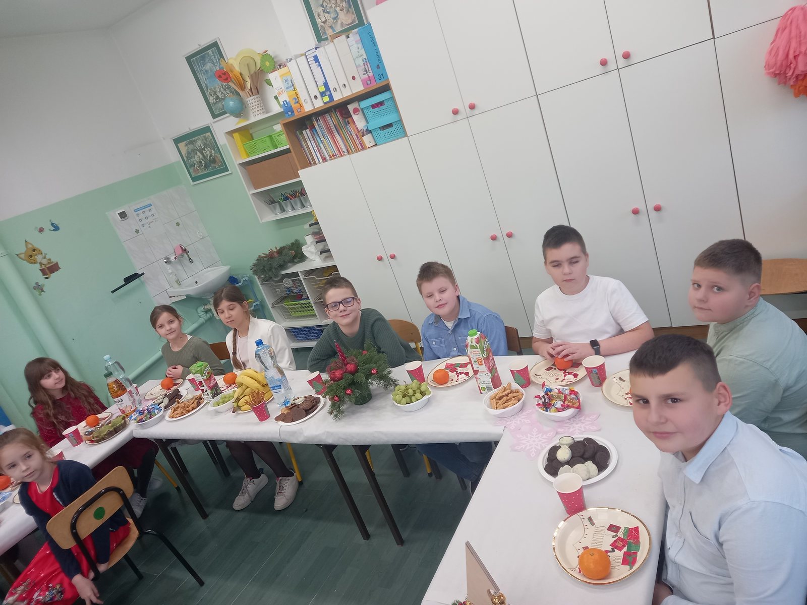 17 grudnia w klasach I–III odbyły się świąteczne spotkania bożonarodzeniowe, które wprowadziły uczniów w wyjątkowy, pełen ciepła i radości nastrój. Był to czas wspólnego kolędowania, dzielenia się opłatkiem, składania życzeń oraz rozmów o tradycjach Bożego Narodzenia. Te wydarzenie sprzyjało integracji, budowaniu wzajemnej życzliwości i poczucia wspólnoty, a dla najmłodszych były piękną okazją do przeżywania magii świąt w gronie kolegów i nauczycieli.