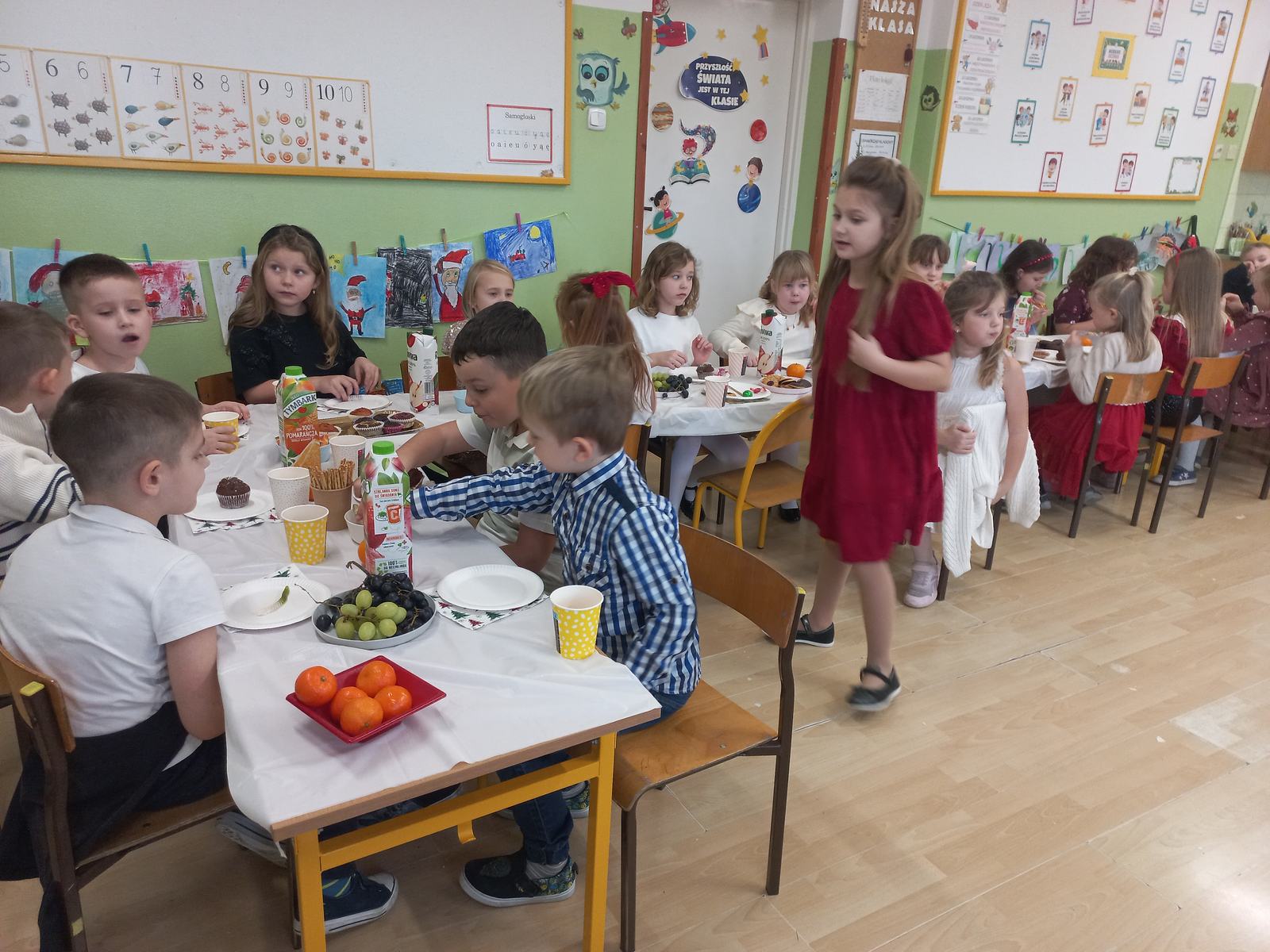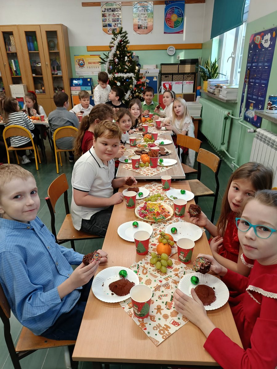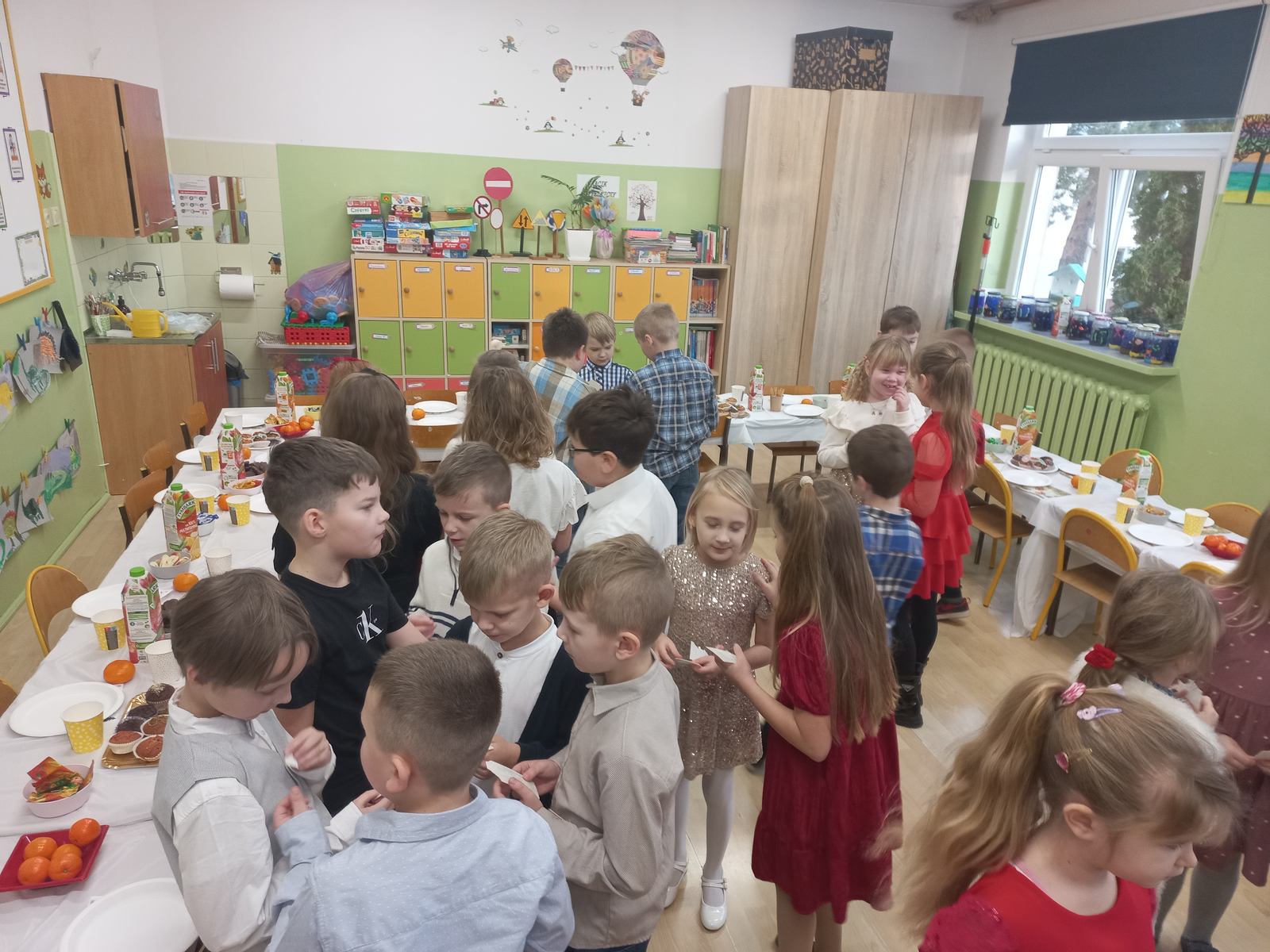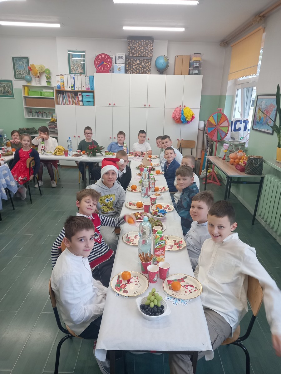17 grudnia w klasach I–III odbyły się świąteczne spotkania bożonarodzeniowe, które wprowadziły uczniów w wyjątkowy, pełen ciepła i radości nastrój. Był to czas wspólnego kolędowania, dzielenia się opłatkiem, składania życzeń oraz rozmów o tradycjach Bożego Narodzenia. Te wydarzenie sprzyjało integracji, budowaniu wzajemnej życzliwości i poczucia wspólnoty, a dla najmłodszych były piękną okazją do przeżywania magii świąt w gronie kolegów i nauczycieli.