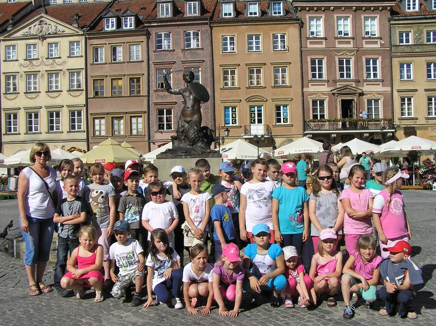 Dnia 12 czerwca 2013r. uczniowie klasy IA i IB wybrali się na integracyjną wycieczkę do Warszawy. Najpierw obejrzeli film ,,Królestwo Zwierząt” w kinie interaktywnym, gdzie przemieszczali się po sześciu salach – sali ruchu, 3D, interaktywnej, wyobraźni, inspiracji i muzyki. Dzieci wraz z kluczem ptaków odbyły podróż ich corocznej migracji, wzięły udział w wyprawie po amazońskiej dżungli, w podwodnej podróży po głębinach mórz i oceanów, poznały sposoby porozumiewania się zwierząt i wiele innych ciekawostek z ich życia. Następnym punktem była wizyta w Eldorado – zabawa na dwupoziomowym statku pirackim, a na zakończenie - spacer uliczkami Starego Miasta. Na rynku podziwialiśmy kolorowe kamieniczki, Syrenkę, spotkaliśmy kataryniarza, ale najważniejszy był Zamek Królewski i Kolumna Zygmunta III Wazy. Nad bezpieczeństwem dzieci oprócz wychowawczyń czuwali rodzice, za co jesteśmy im bardzo wdzięczni.