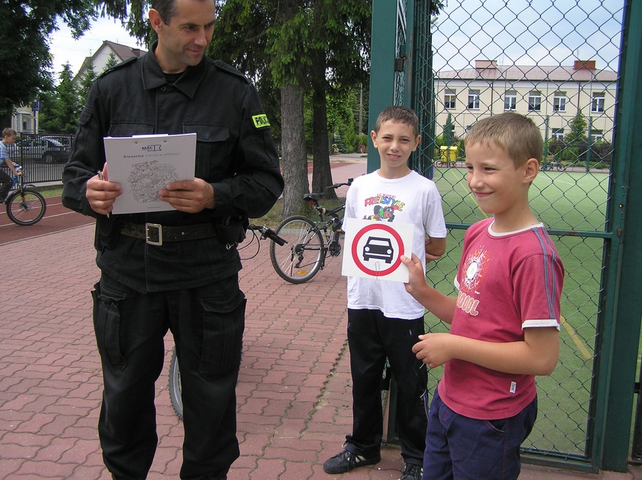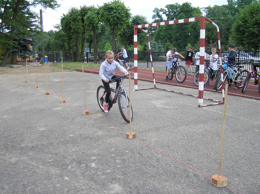 Zmaganiom praktycznym czujnym okiem przypatrywał się pan policjant wraz z nauczycielem zajęć wychowania komunikacyjnego, wychowawcami klas IV i panią dyrektor. Bardzo ważnym elementem egzaminu było zaprezentowanie sprawnej jazdy na rowerze. Nasze działania cieszyły się sporym zainteresowaniem, a sam egzamin był dużym przeżyciem. Wszyscy, którzy przystąpili do części praktycznej egzaminu, zdali go.
