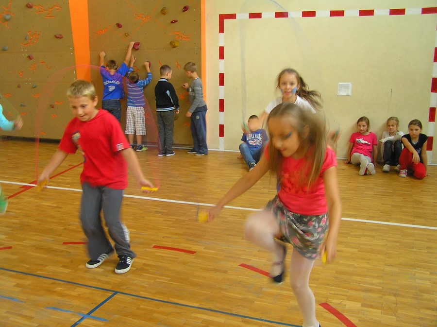 Skoki na skakance: I miejsce - Wiktoria Skarpetowska, II miejsce - Olga Ludwikowska, III miejsce - Jagna Andrusiuk i Dominik Turowski.
