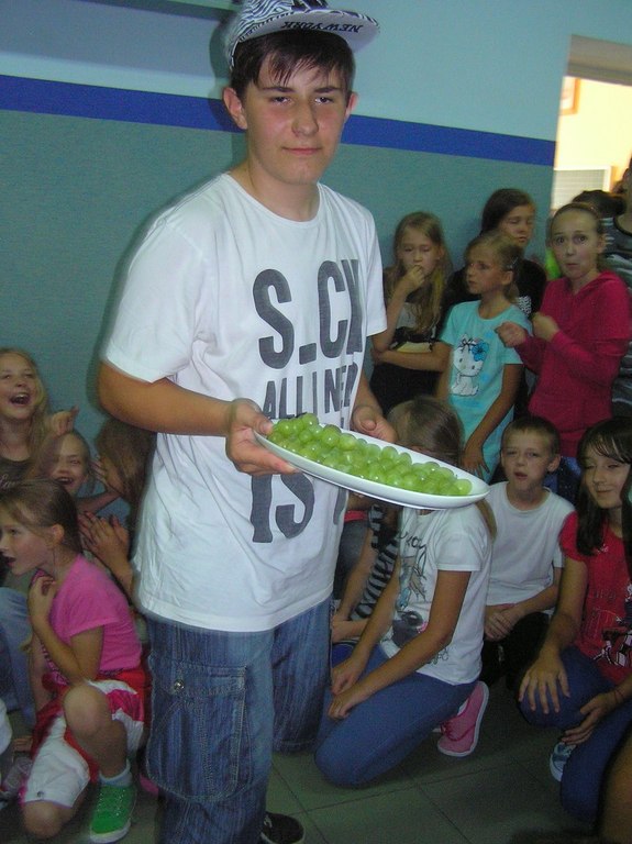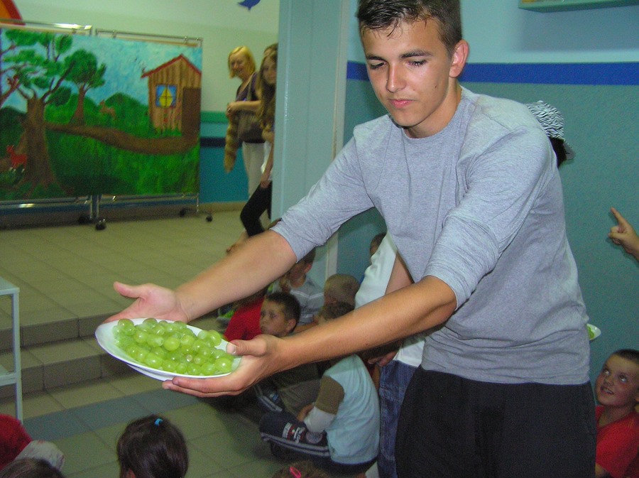 Na koniec gimnazjalistki zaprezentowały eko-modę a gimnazjaliści poczęstowali wszystkich zdrowymi owocami.