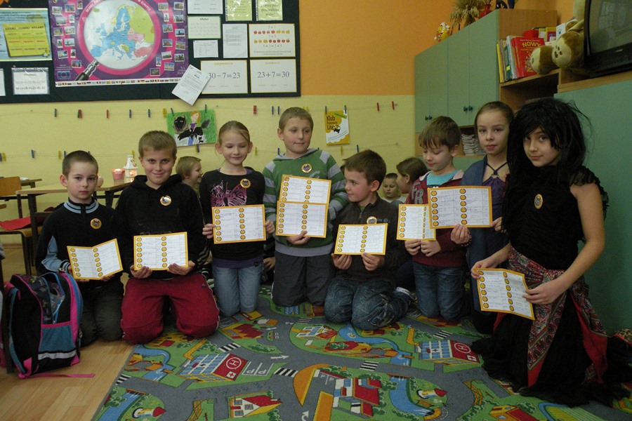 Uczniowie klasy III biorą udział w ogólnopolskim projekcie promującym czytelnictwo „Świerszczykowy Klub Pożeraczy Liter”. 29 listopada, na zajęciach połączonych z andrzejkowymi wróżbami, wręczone zostały pierwsze odznaki dla uczniów, którzy zapełnili pierwszą legitymację, czyli przeczytali 12 książek (w tym „Świerszczyki”). Odznaki „Wspaniałego Pożeracza Liter” otrzymali: Jagna Andrusiuk, Kacper Groszyk, Mateusz Iwański, Jakub Kaniewski, Władysław Kawecki, Olga Ludwikowska, Wiktoria Skarpetowska i Dominik Turowski. Gratulacje! Uczniowie ci wchodzą na drugi poziom i będą zdobywać odznakę „Jeszcze Wspanialszego Pożeracza Liter”. Odznakę taką otrzymał już Dominik Turowski.