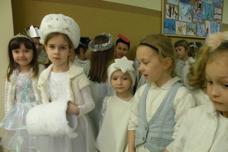 15 stycznia wszyscy uczniowie z klas 0 –III przebrali się za postacie związane z zimą. Były Śnieżynki, Bałwanki, Gwiazdki, Panie Zimy. A co na to zima? Od samego rana sypała białym puchem …” a Bałwanki jak wiadomo stworki to wesołe”, więc postanowiły sprawdzić to osobiście …