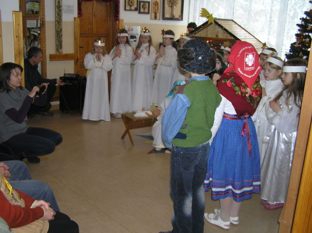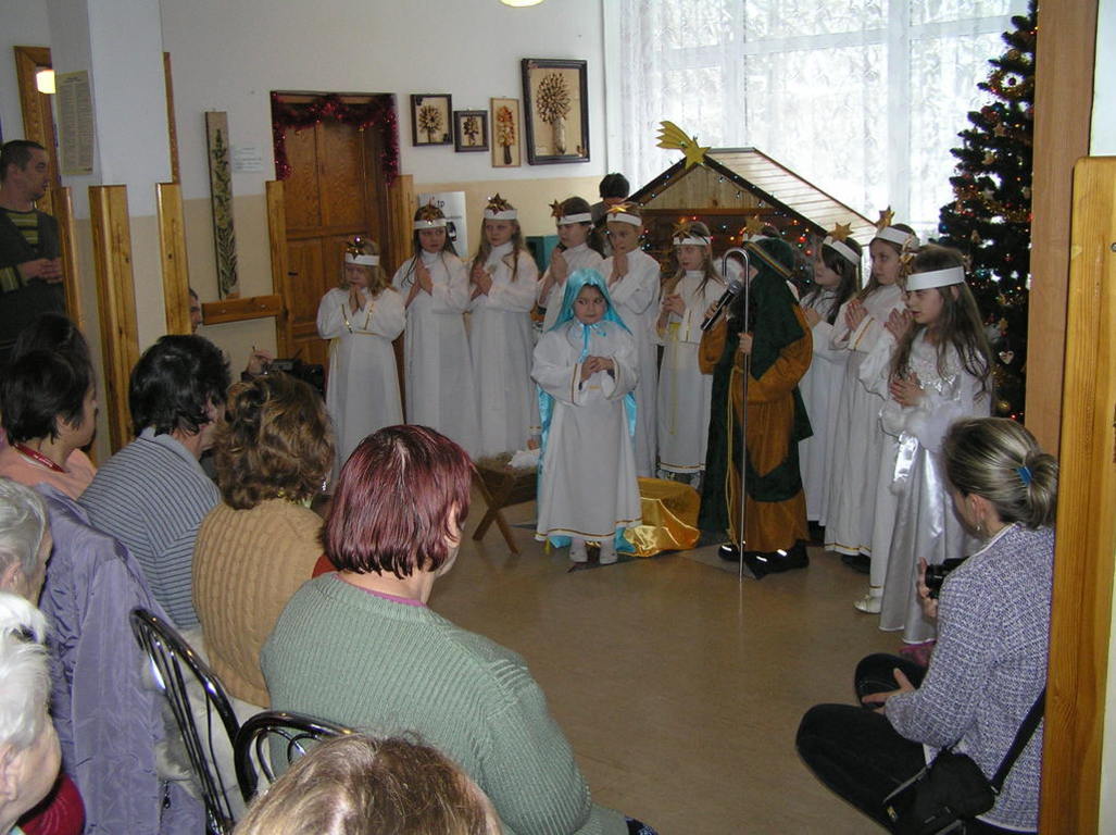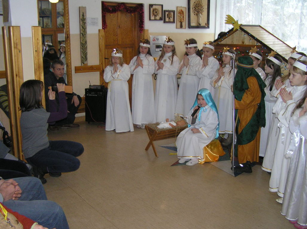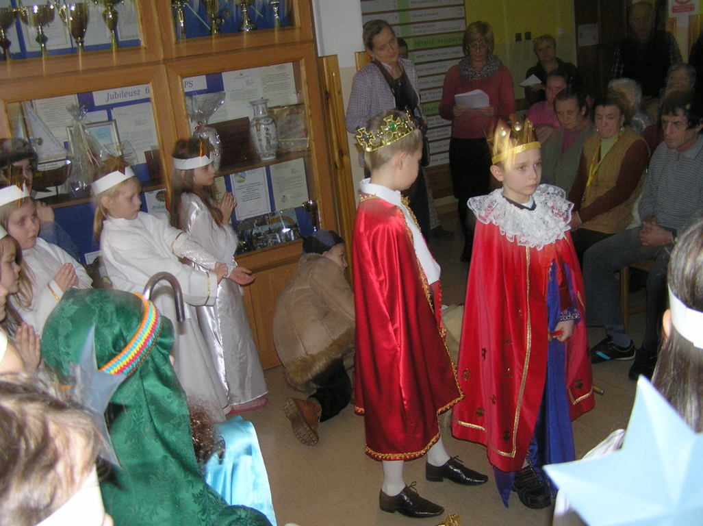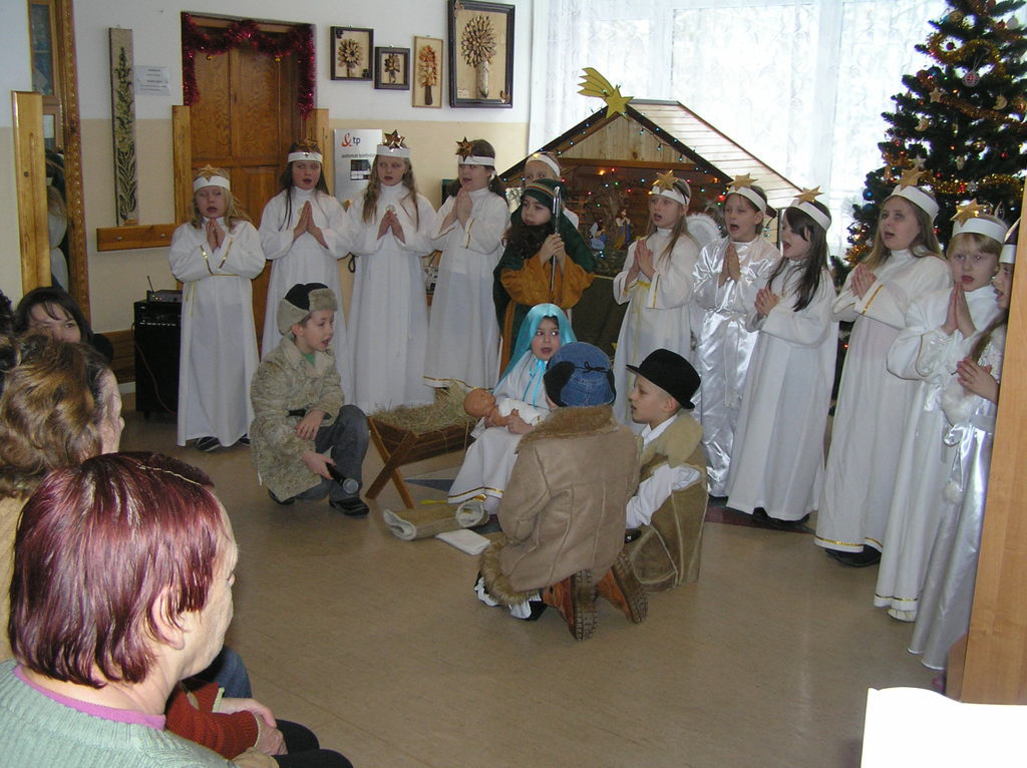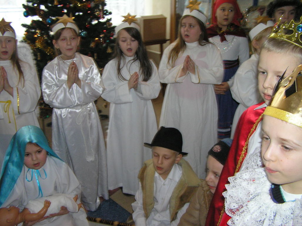 Mali artyści ubrani w piękne kostiumy wcielili się w role: Świętej Rodziny, Aniołów, Trzech Króli i Pasterzy. Przybliżyli wydarzenia jakie miały miejsce ponad 2000 lat temu w Betlejem, niosąc przesłanie od Bożej Dzieciny o miłości, pokoju wierze i nadziei na Ziemi. Anielski śpiew kolęd wywołał w niejednym oku łzę wzruszenia.
