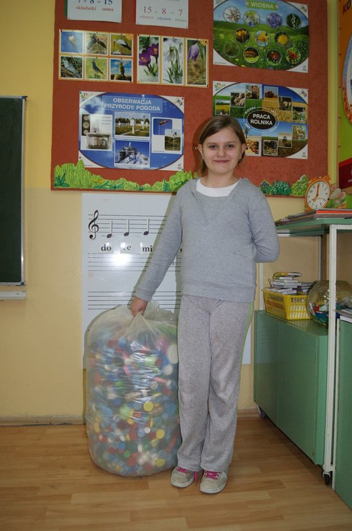 Zebraliśmy już ponad 110 kg plastikowych nakrętek, które sukcesywnie przekazujemy Fundacji „Słyszę, mówię, czuję". W akcję bardzo zaangażowali się rodzice i uczniowie z klasy 0 b (około 40kg), klasy III (ponad 30kg) i klasy IIa (26kg). Rekordziści indywidualni to: Dominik Turowski - 14kg, Małgosia Jodynis - 13kg, Kuba Zmysłowski - 12kg, Weronika Nowak - 8,60kg, Bartosz Papis - 7,60kg, Paulinka Cichowska - 7kg, Patryk Grzesiak - 6,80kg, Janek Karamuz - 6,5kg.