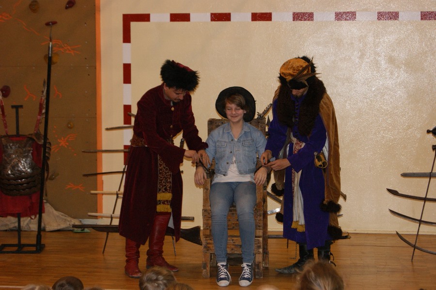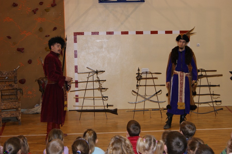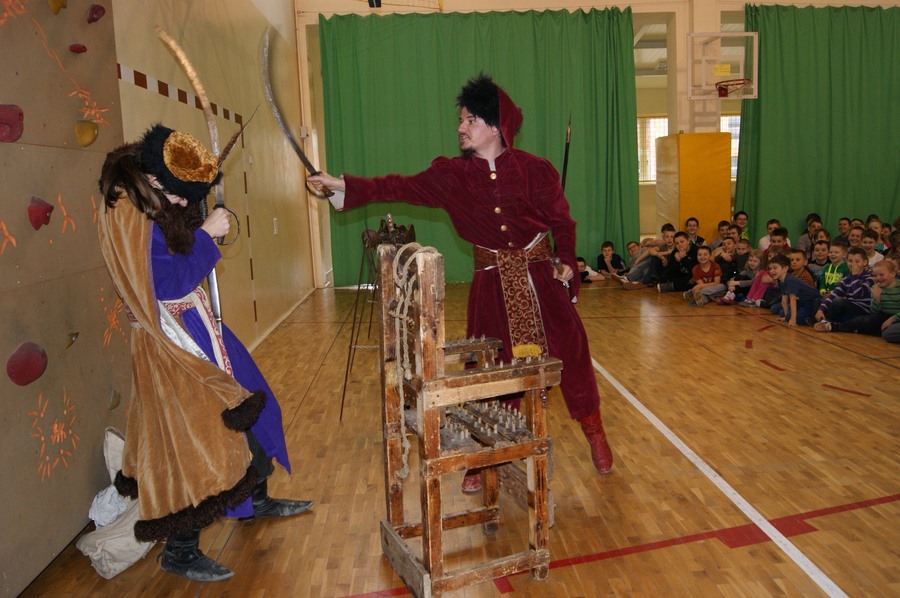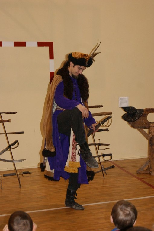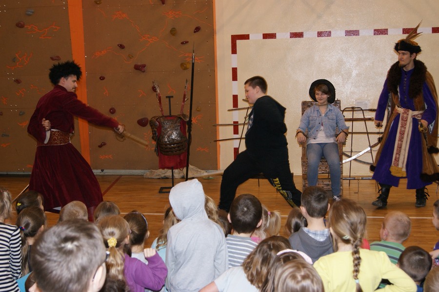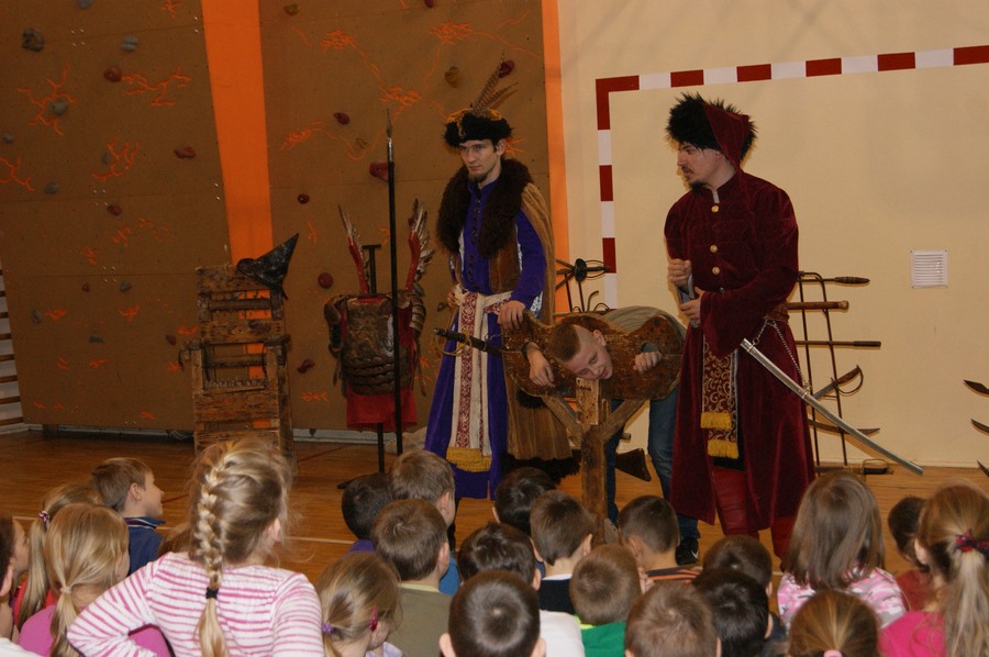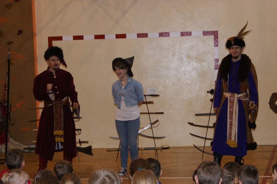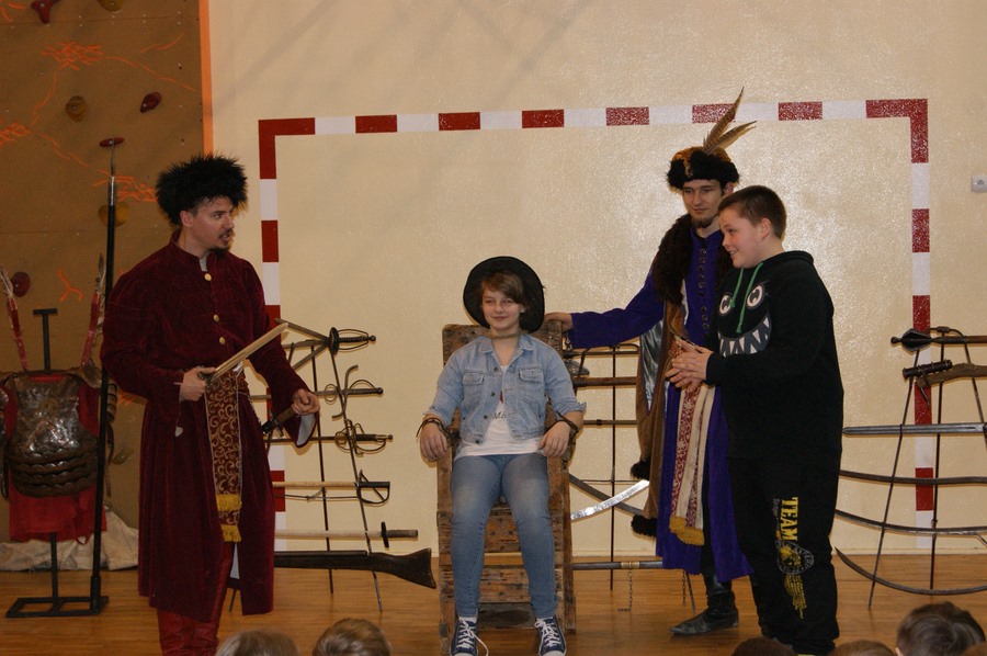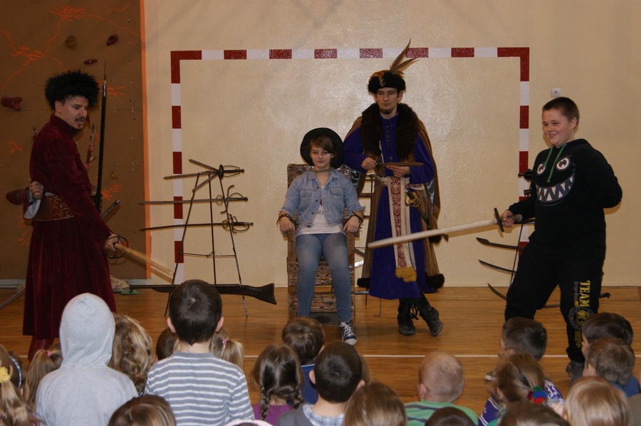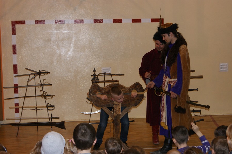 18 marca w naszej szkole odbył się pokaz grupy rekonstrukcji historycznej. Mieliśmy okazję zapoznać się z różnymi rodzajami broni używanej w I Rzeczypospolitej oraz pogłębić wiedzę o obyczajach szlachty. Niektórzy uczniowie aktywnie uczestniczyli w pokazie, odgrywając różne role. Niezwykle ciekawa narracja w połączeniu z gruntowną wiedzą rekonstruktorów dała nam nie tylko możliwość dobrej zabawy, ale też zdobycia wiedzy. Niektórzy z nas z pewnościa bardziej zainteresują się historią, a jeden z uczniów - zakuty w dyby - przyrzekł nawet poprawę oceny z tego przedmiotu.