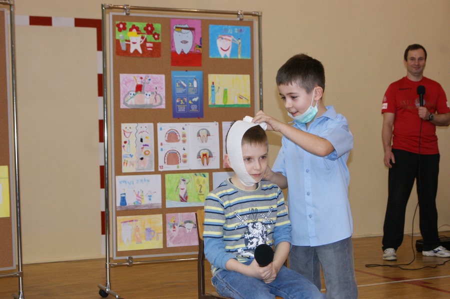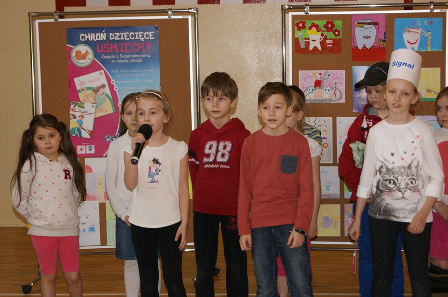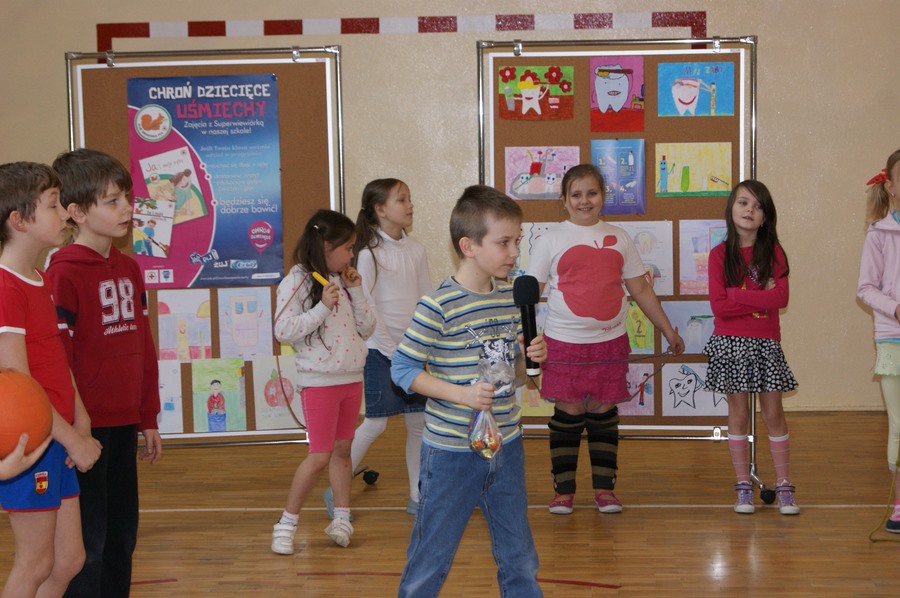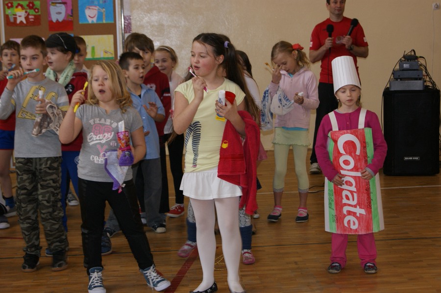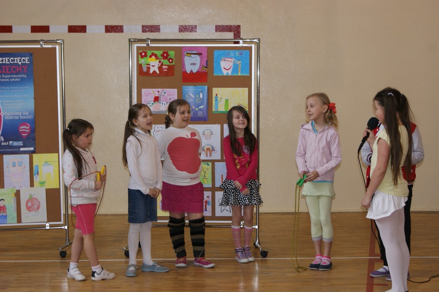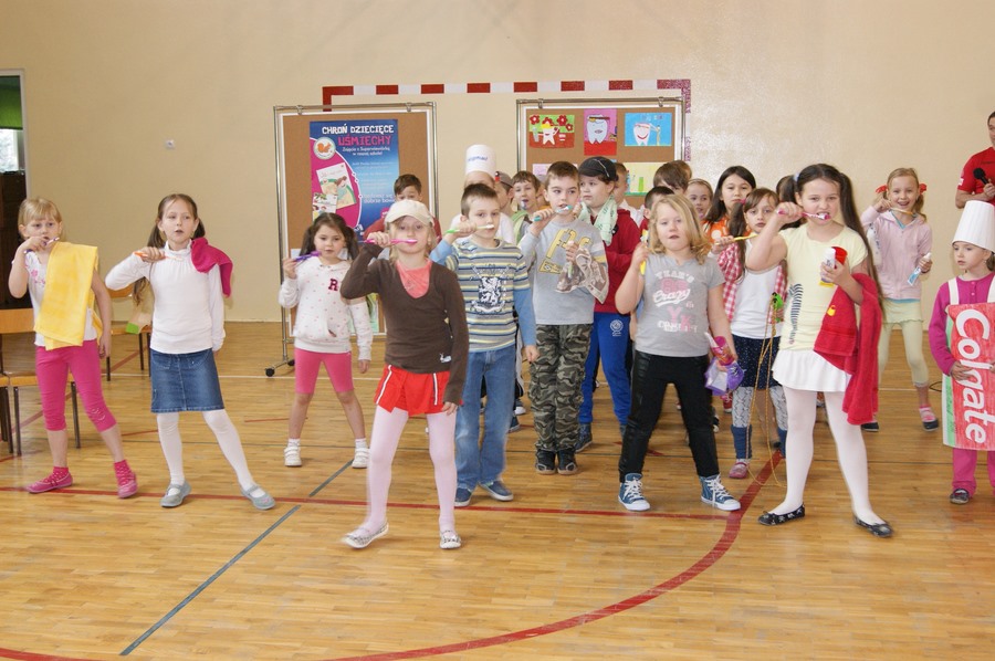 W ramach programu edukacyjnego "Chroń Dziecięce Uśmiechy" uczniowie koła teatralnego przygotowali program "Cukiereczek na podwórku". Dzieci zachęcały do prawidłowego odżywaiania się i dbałości o higienę jamy ustnej. W żartobliwy sposób pokazały scenki przedstawiające niewłaściwe zachowania.