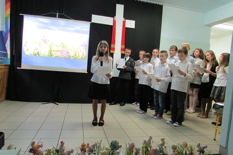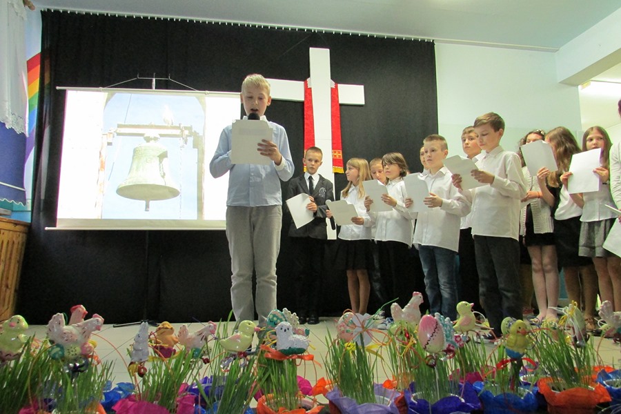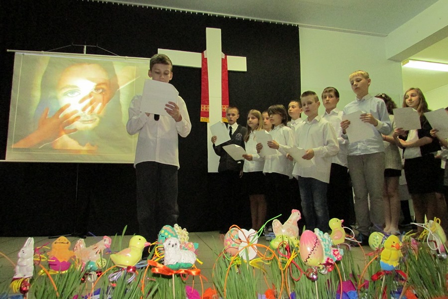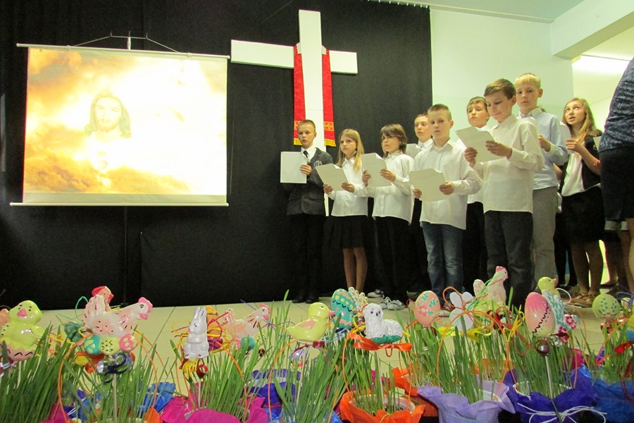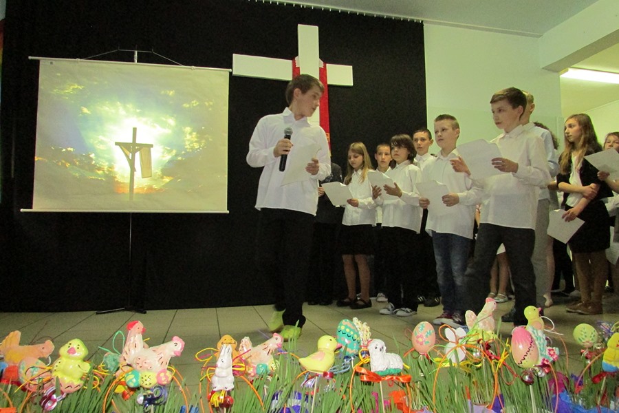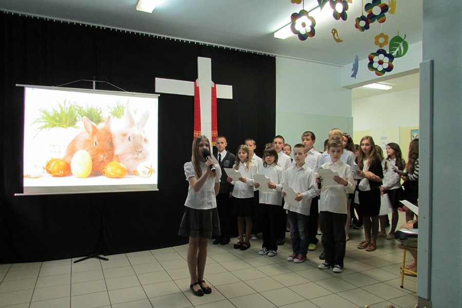 16.04.2014r. w naszej szkole odbył się uroczysty apel wielkanocny. Specjalnie na tę okazję klasa Va wraz z wychowawczynią p. Justyną Łempicką przygotowała krótką inscenizację. Przybliżyli wszystkim zebranym tradycje świąteczne. Nie zabrakło również pieśni wykonanych przez koło wokalne pod kierunkiem pani Julity Gąsiewskiej.