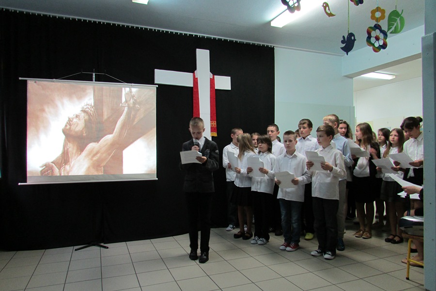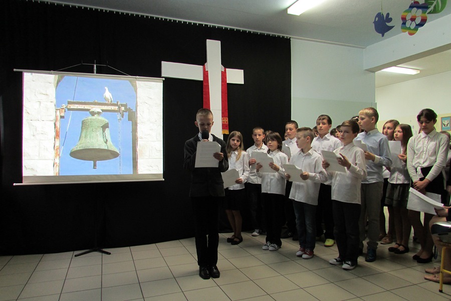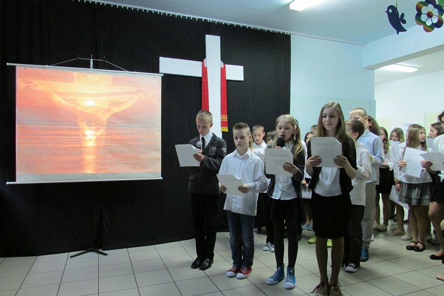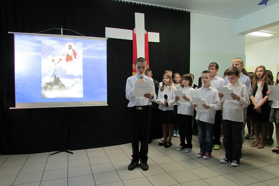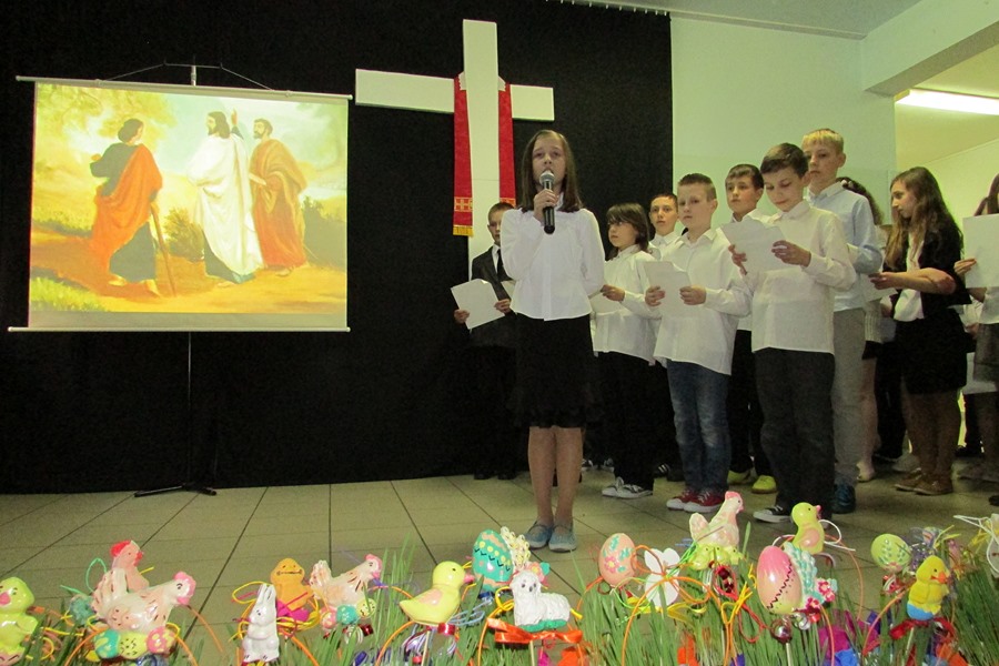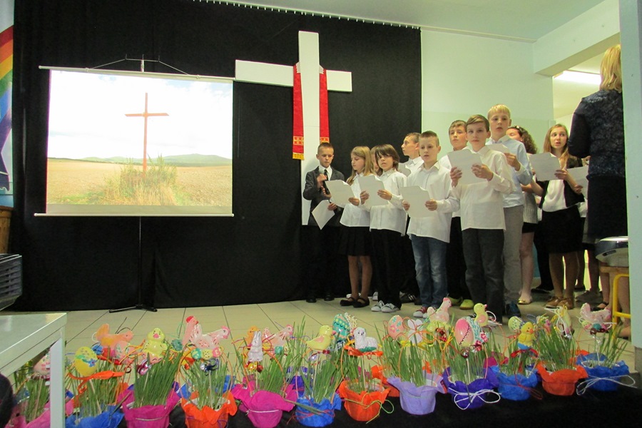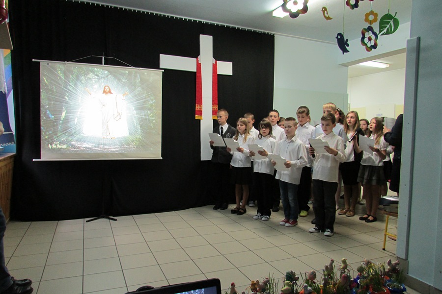 16.04.2014r. w naszej szkole odbył się uroczysty apel wielkanocny. Specjalnie na tę okazję klasa Va wraz z wychowawczynią p. Justyną Łempicką przygotowała krótką inscenizację. Przybliżyli wszystkim zebranym tradycje świąteczne. Nie zabrakło również pieśni wykonanych przez koło wokalne pod kierunkiem pani Julity Gąsiewskiej.