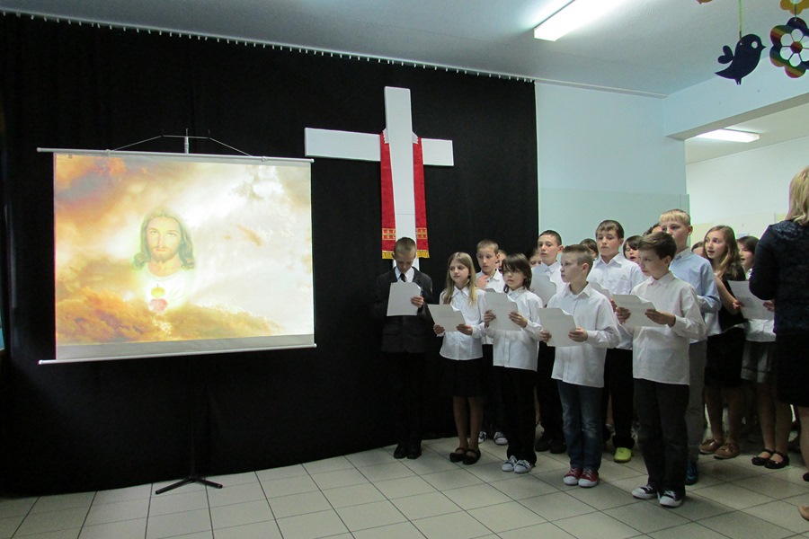 Na zakończenie apelu pani dyrektor złożyła wszystkim uczniom, rodzicom i nauczycielom życzenia świąteczne.