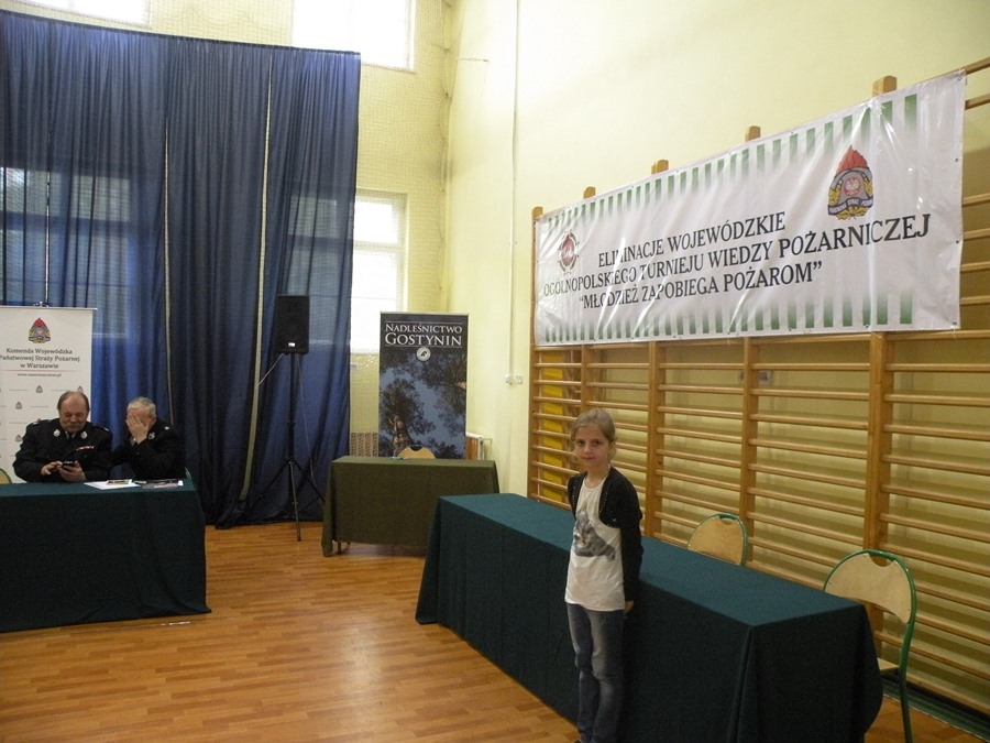 Karolina Szymańska z klasy Va reprezentowała powiat wyszkowski na etapie wojewódzkim Ogólnopolskiego Turnieju Wiedzy Pożarniczej pod hasłem "Młodzież zapobiega pożarom". Konkurs odbył się 26 kwietnia w Zespole Szkół w Lucieniu gmina Gostynin. W kategorii szkół podstawowych rywalizowało 35 uczniów, którzy zajęli I miejsca w swoich powiatach. Karolina nie stanęła na podium zwycięzcy, ale wykazała się dużą wiedzą i przywiozła z konkursu nowe doświadczenia a także dyplom i upominki.