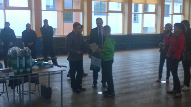 I miejsce w kategorii szkół podstawowych zajęła drużyna z naszej szkoły w składzie: Wiktoria Cichowska z kl. IV, Karolina Szymańska z kl. Va, Michał Kot z kl. Va i Tomasz Maksiak z kl. VIb. Tytuł najlepszego zawodnika w kategorii szkół podstawowych przypadł Tomkowi, który został wyróżniony dyplomem i nagrodą rzeczową. Wszyscy uczestnicy zostali obdarowani atrakcyjnymi nagrodami rzeczowymi i brawami.